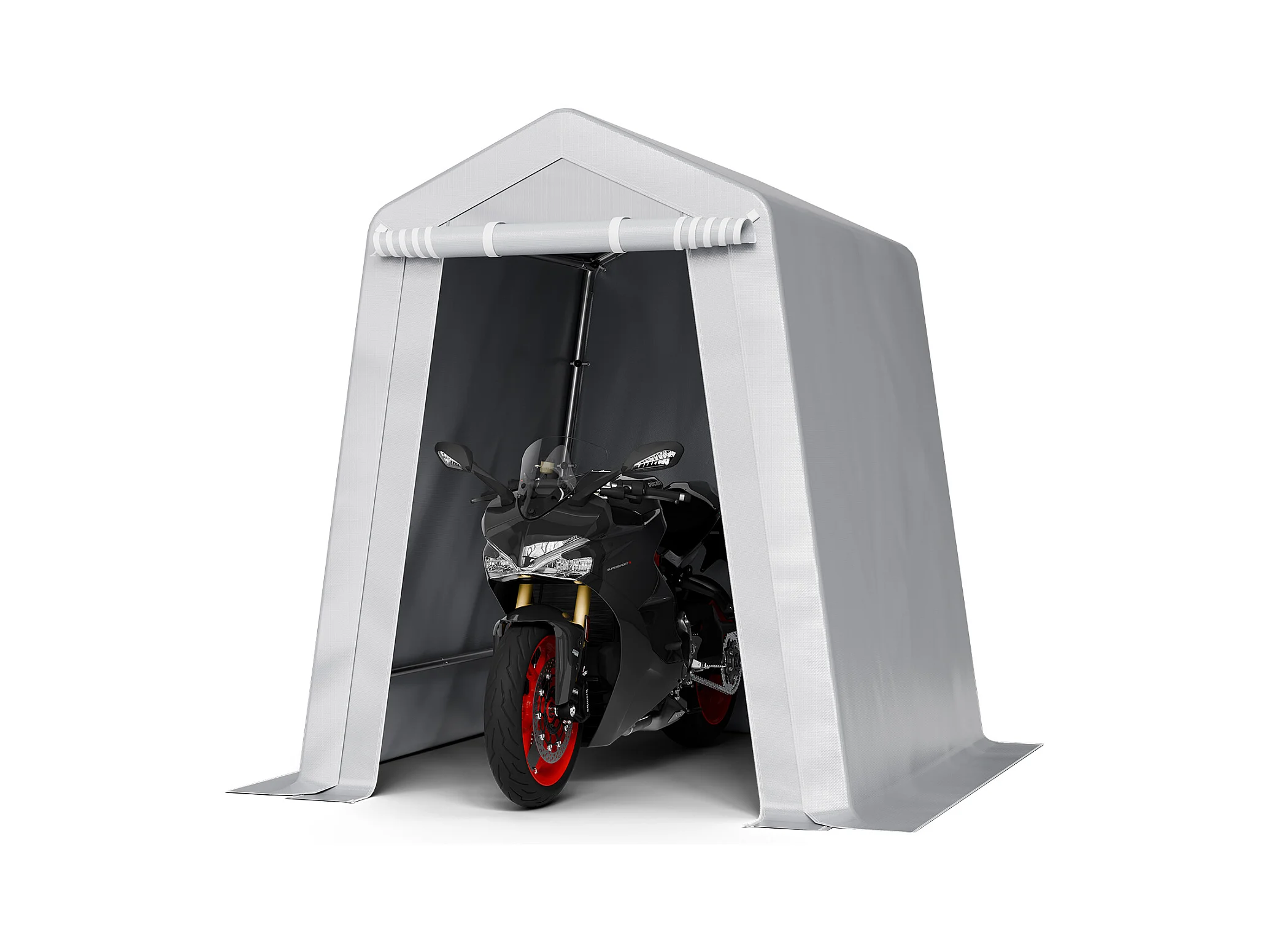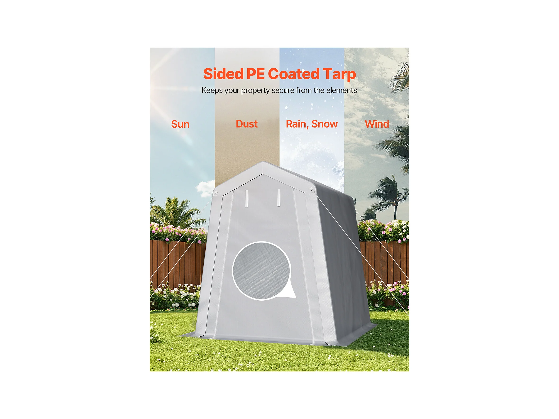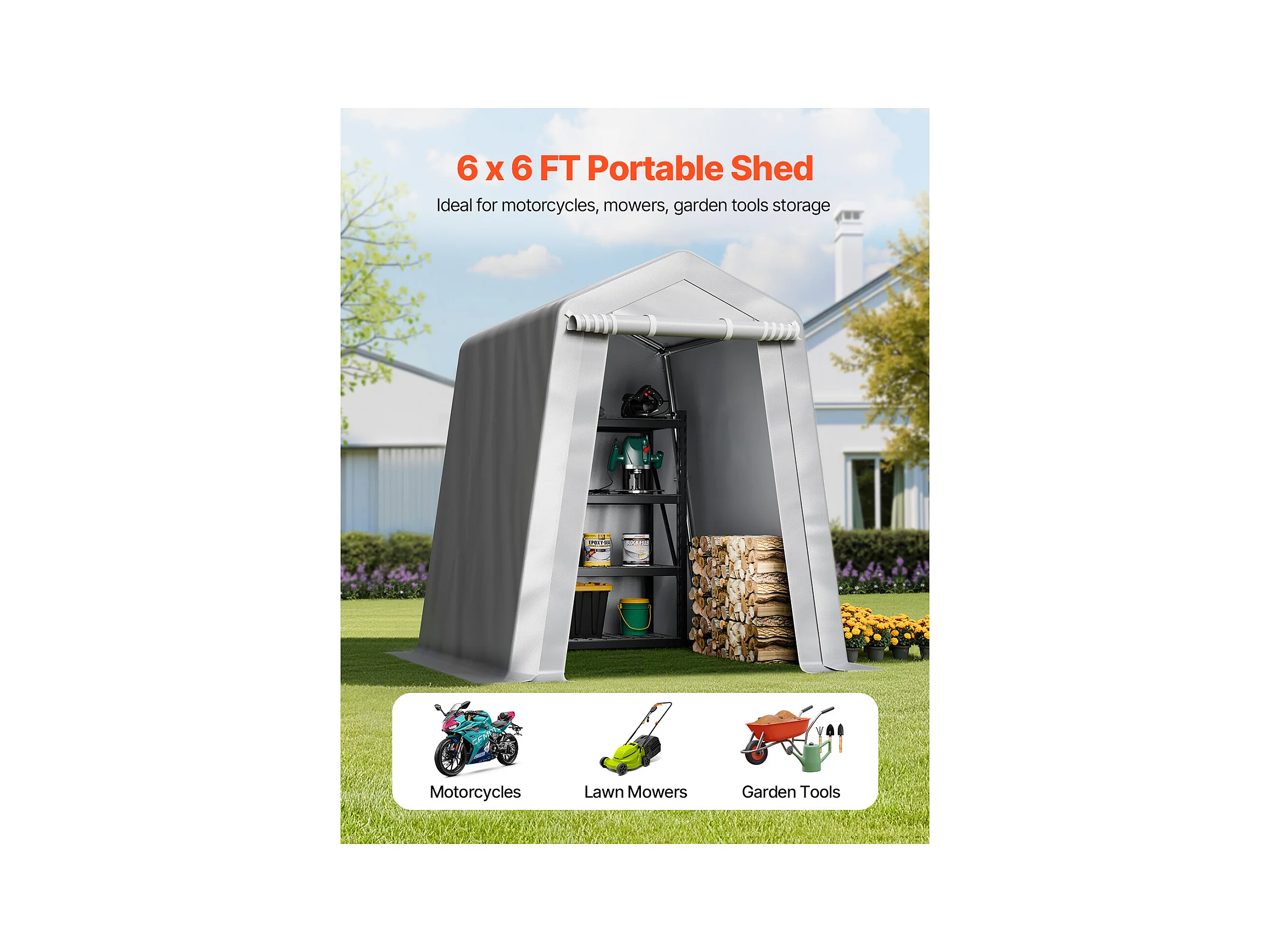 Riparo da Giardino SucceBuy, 183x183 cm, Tenda Portaoggetti, con Porta con Cerniera Avvolgibile, Garage Esterno per Moto, Biciclette, Attrezzi da Giardino, Grigio