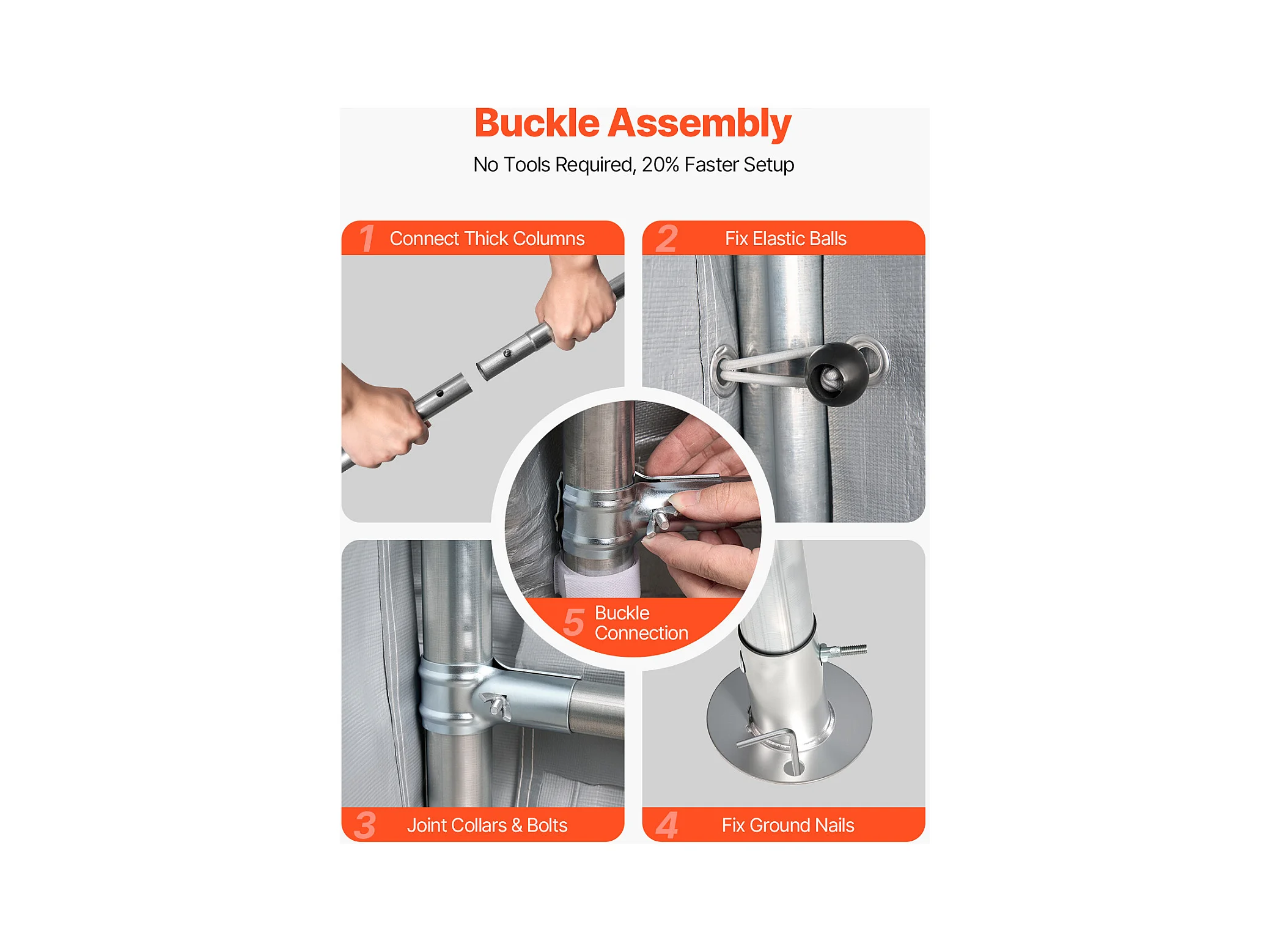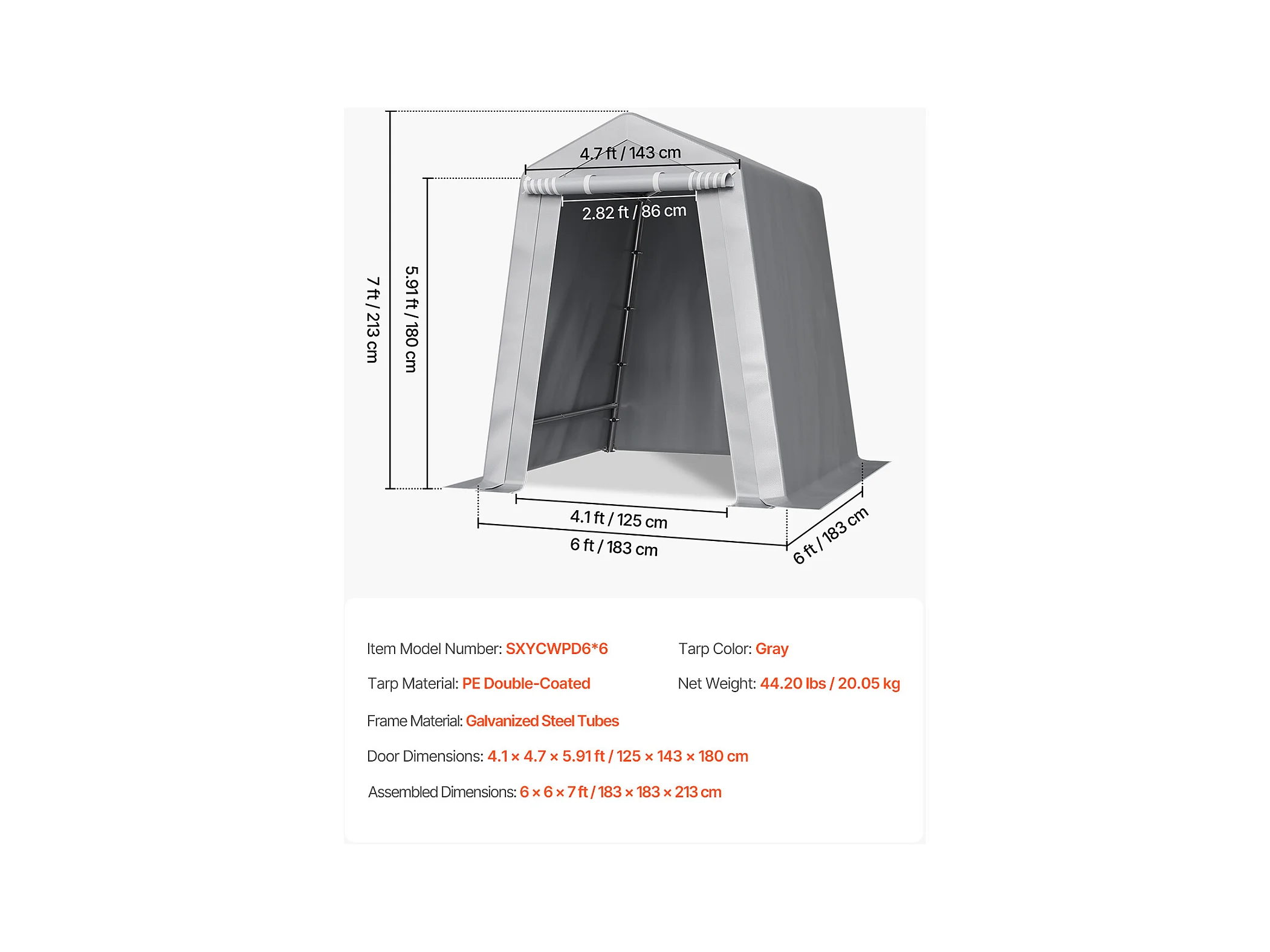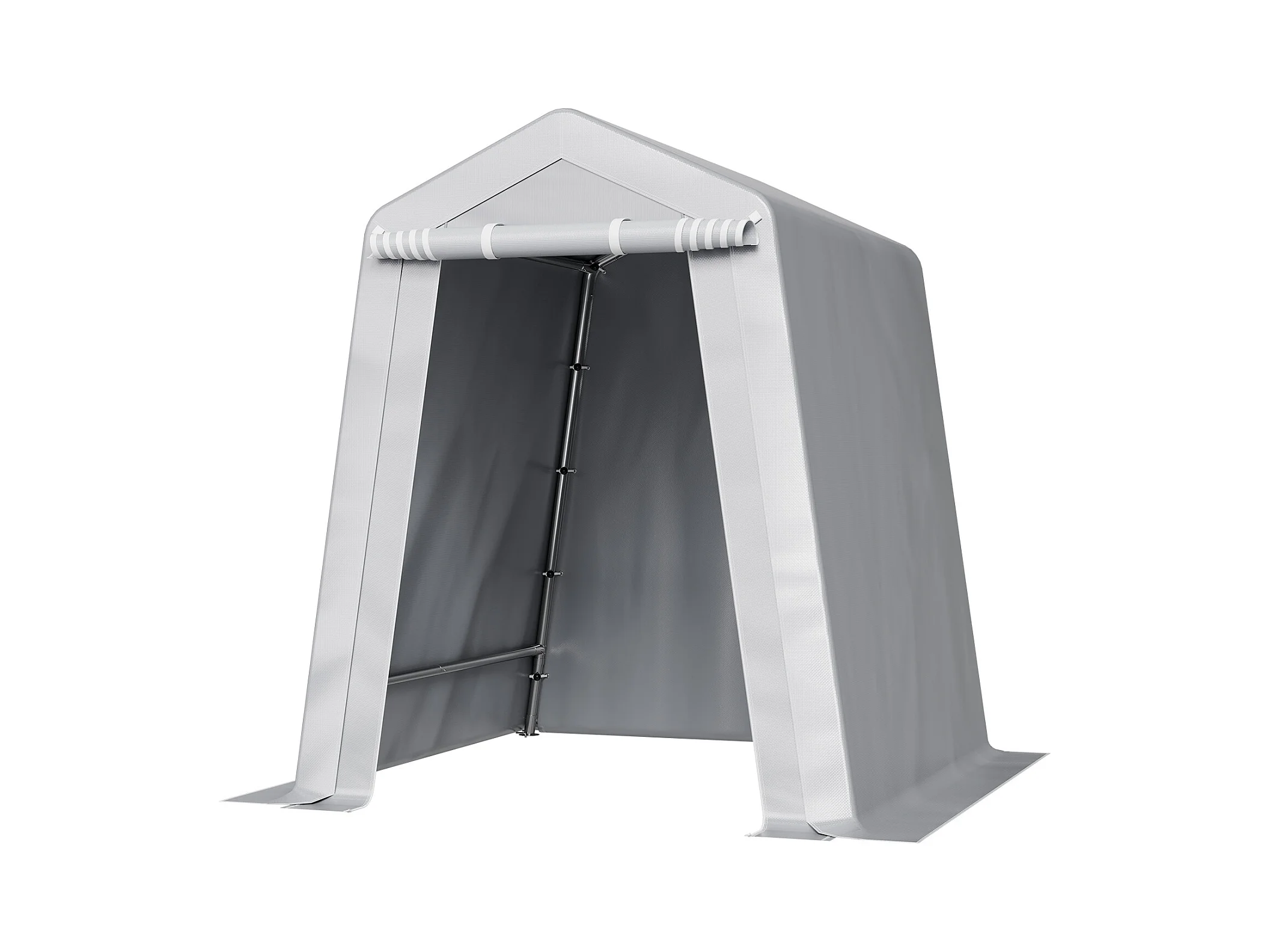 Riparo da Giardino SucceBuy, 183x183 cm, Tenda Portaoggetti, con Porta con Cerniera Avvolgibile, Garage Esterno per Moto, Biciclette, Attrezzi da Giardino, Grigio