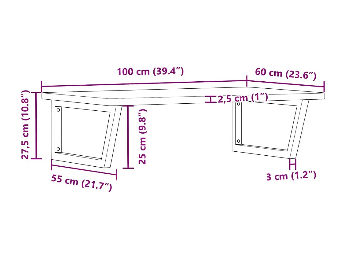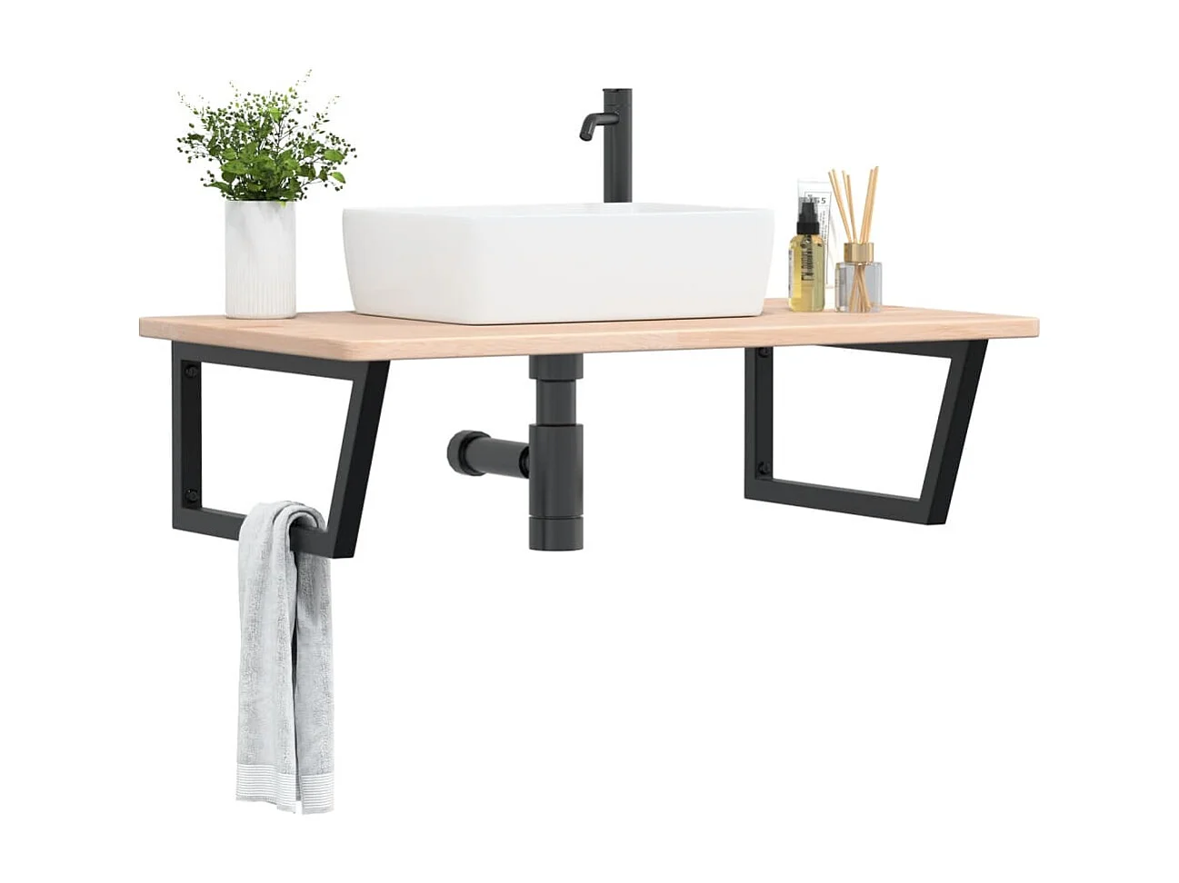 Ripiano a Parete per Lavabo in Acciaio e Massello di Acacia