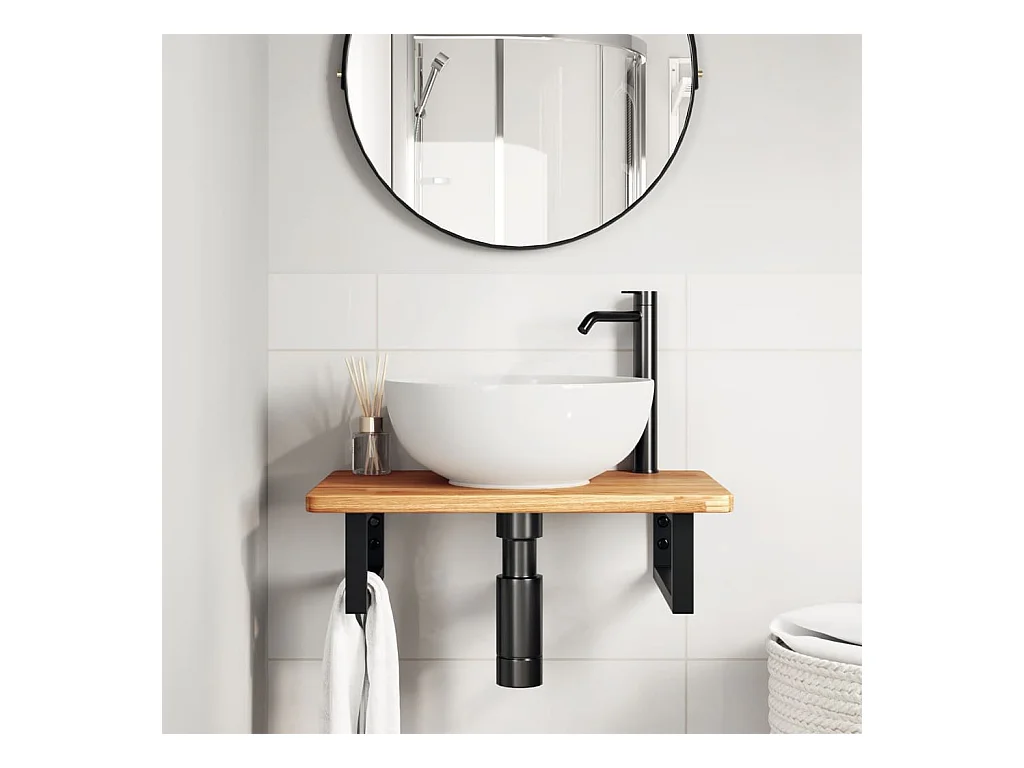 Ripiano a Parete per Lavabo in Acciaio e Massello di Rovere