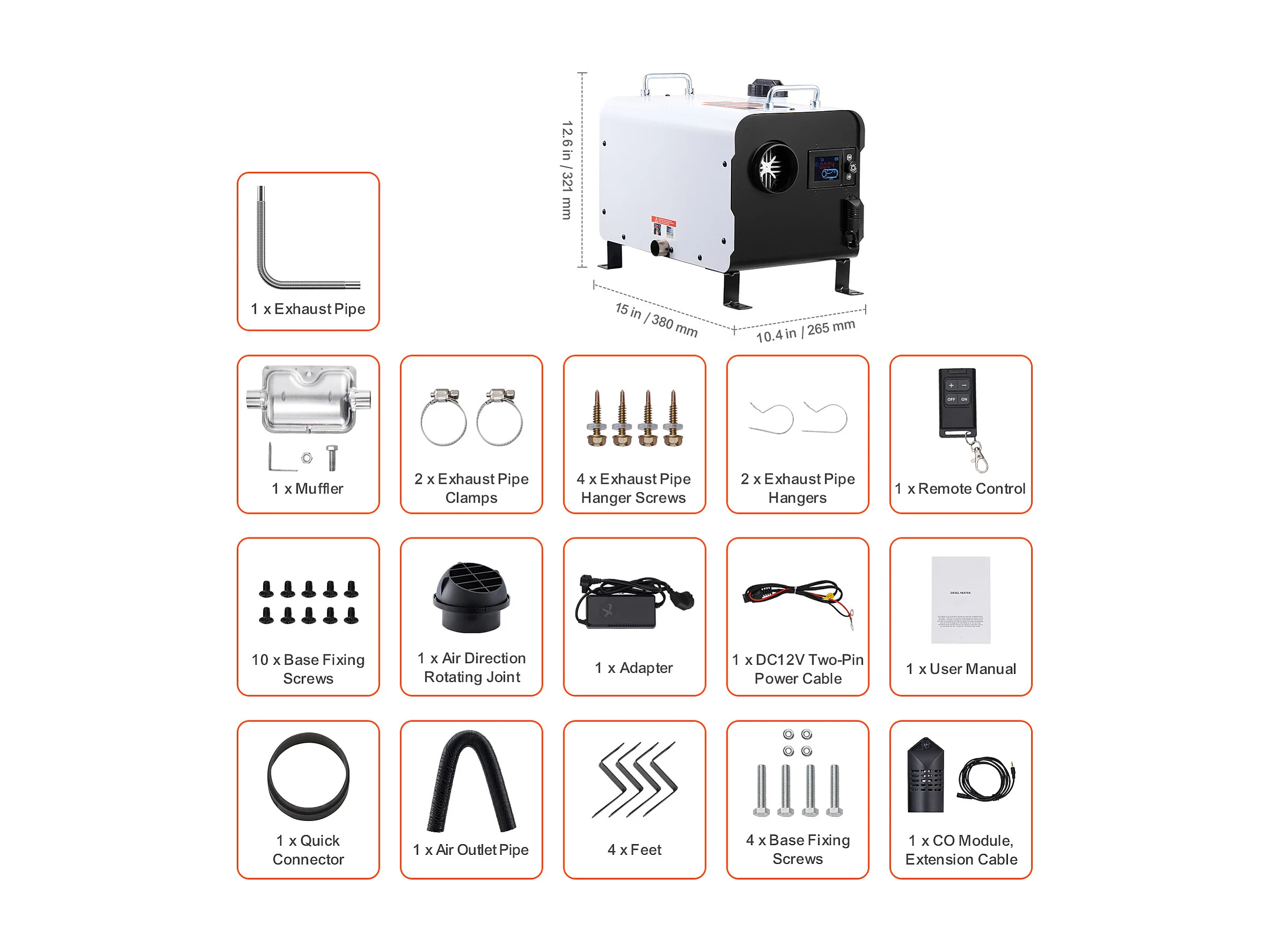 Riscaldatore d'Aria Diesel SucceBuy 8KW 12V/24V Bluetooth APP, Telecomando per Esterni