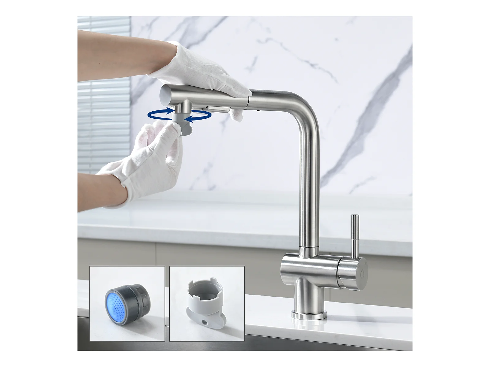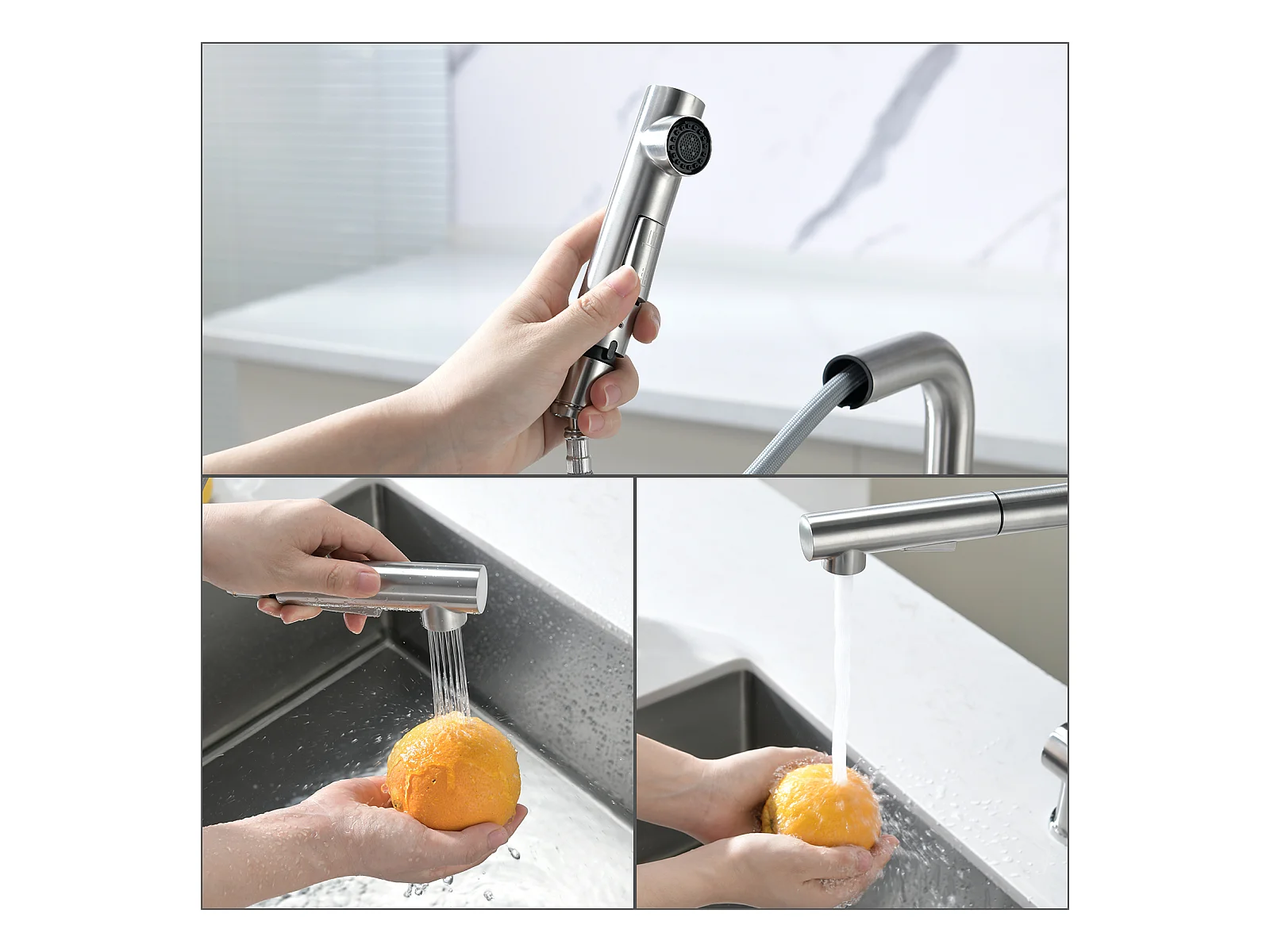 Rubinetto da cucina estraibile Cecipa max 2 pezzi - Miscelatore per lavello 2 modalità di spruzzo - Girevole a 360° - Spazzolato, Modello UE