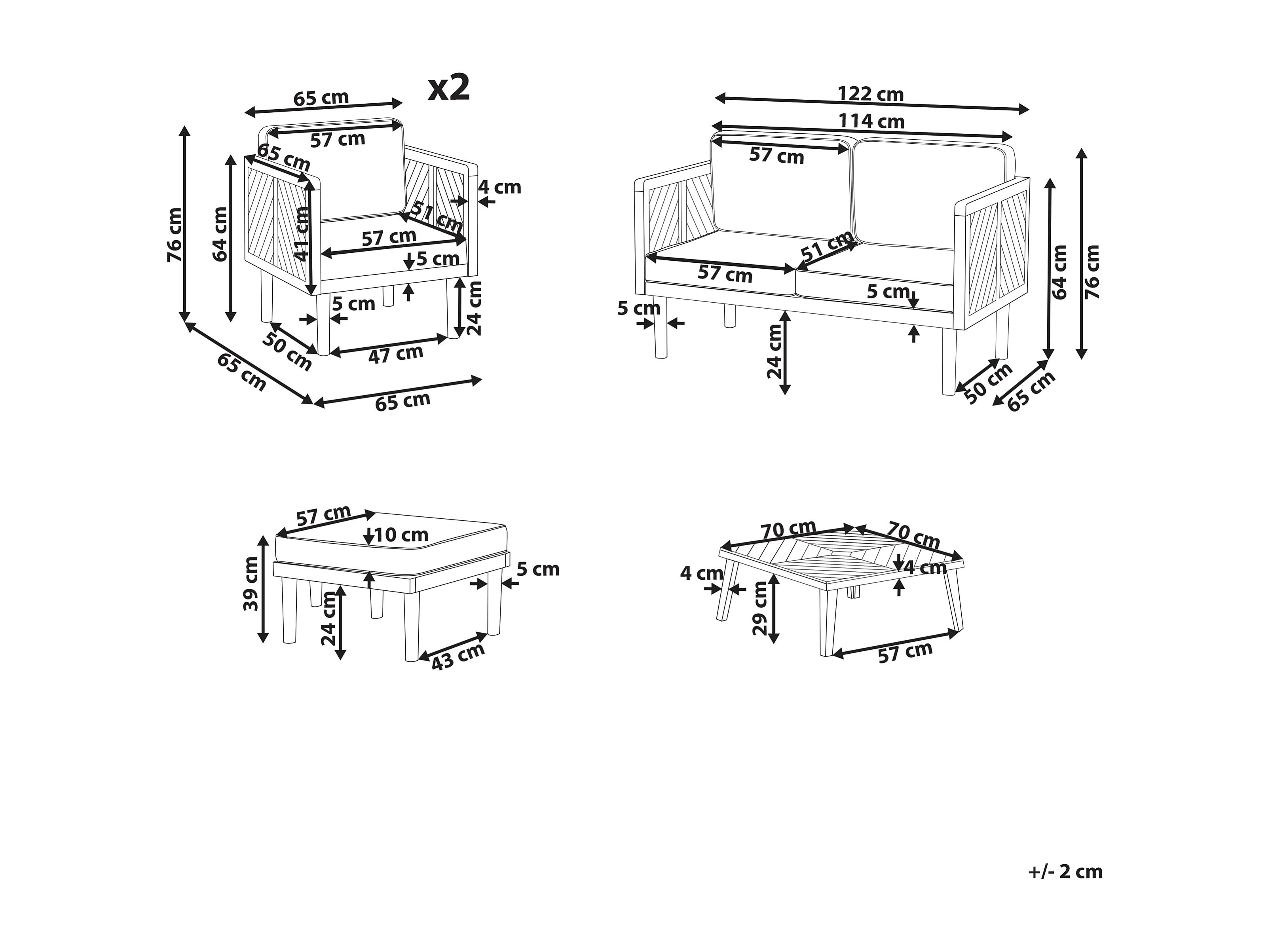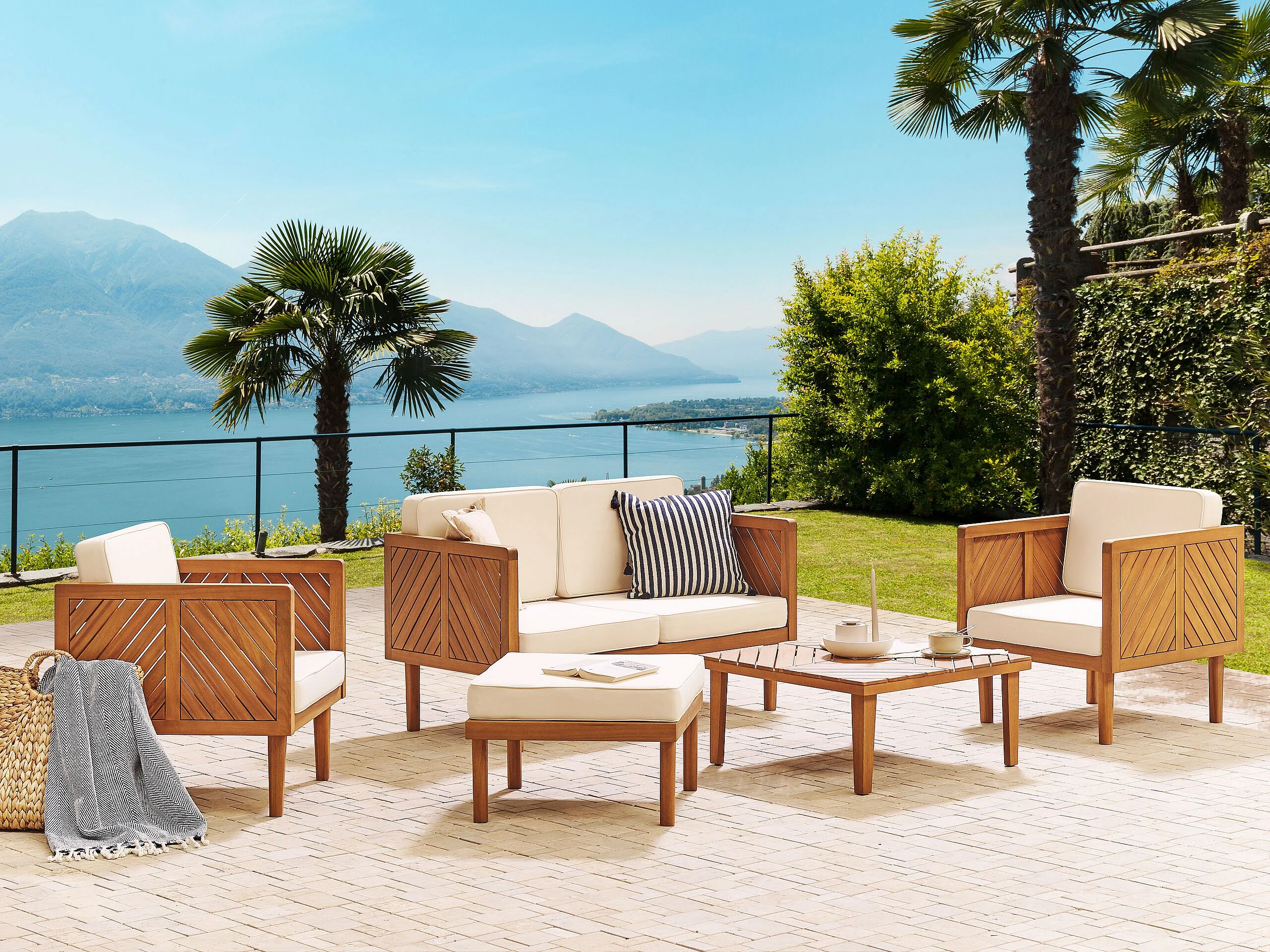 Set salotto da giardino con tavolo e pouf 4 posti BARATTI Legno d'acacia Marrone