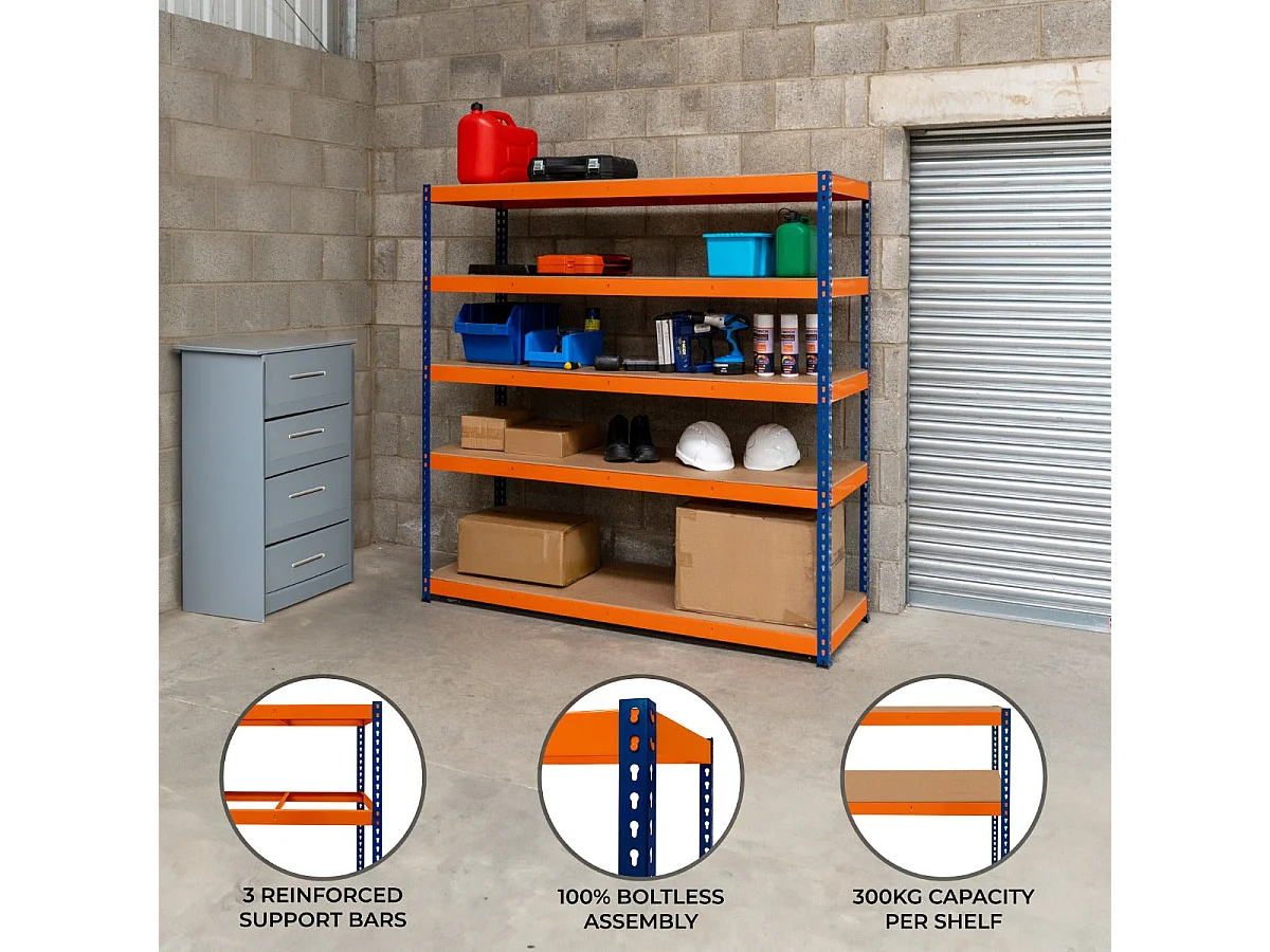 5 Scaffali T-Rax In Acciaio Senza Bulloni Blu 120cm