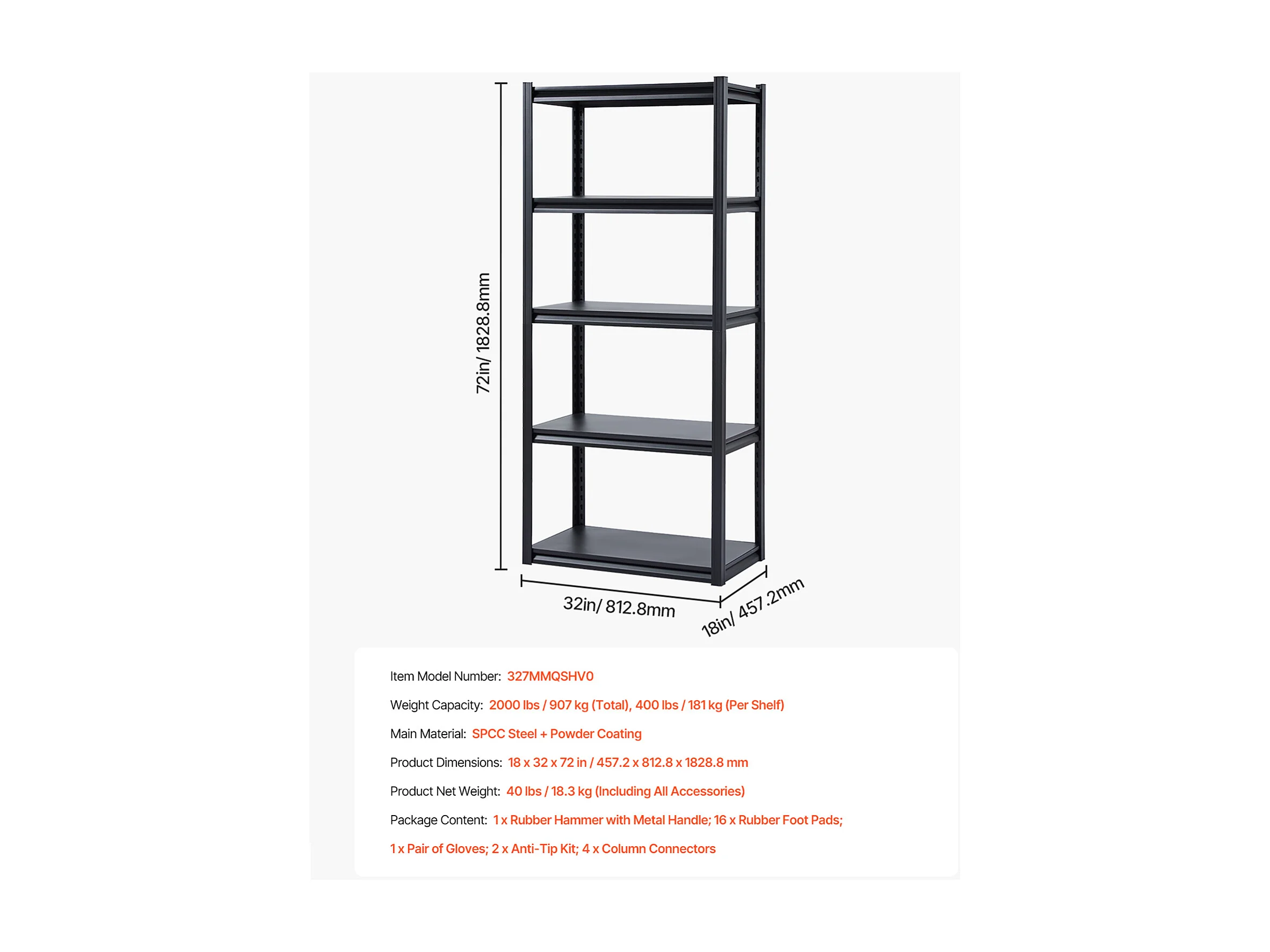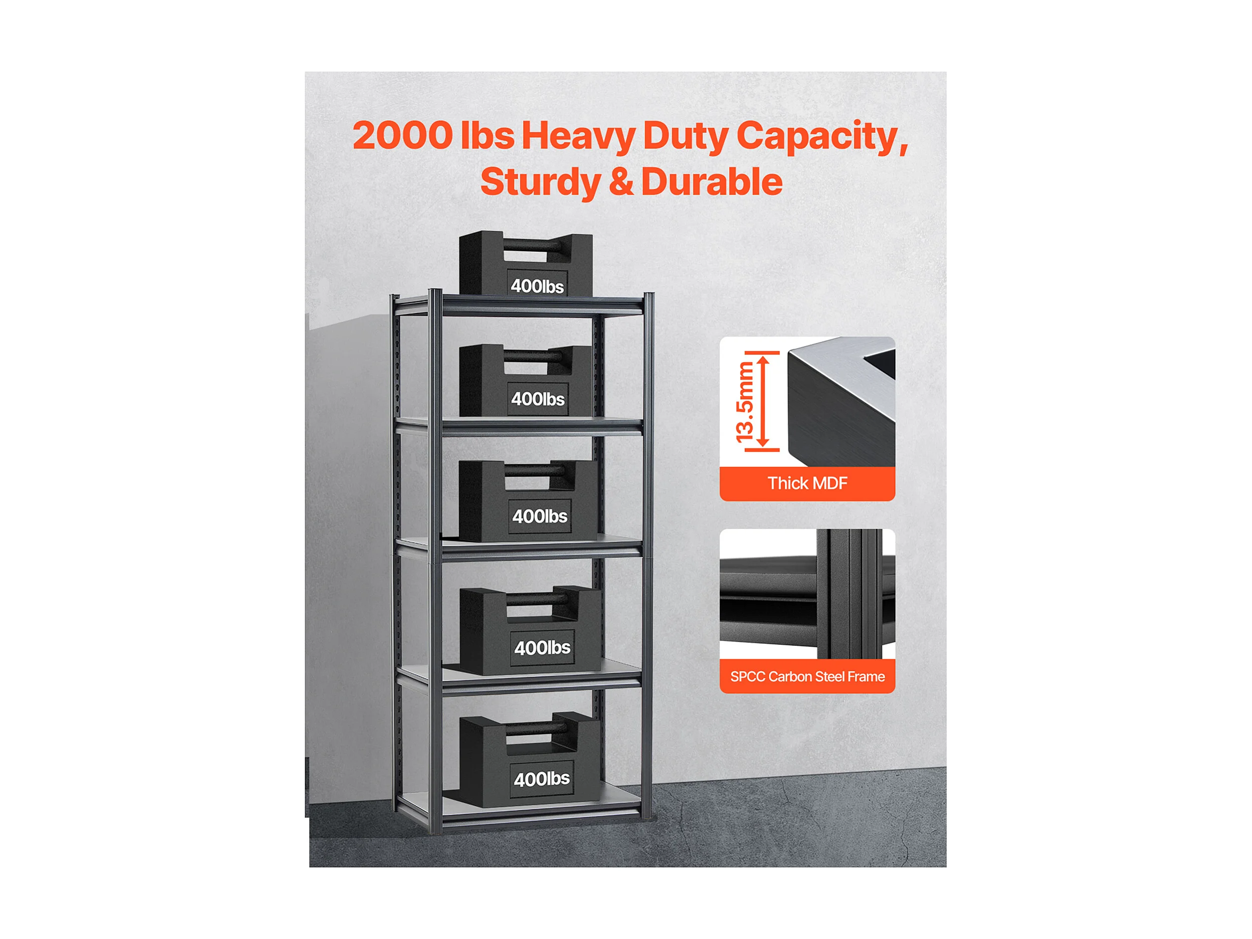 Scaffalature Metalliche per Garage SucceBuy Scaffali per Garage a 5 Ripiani, 46 cm P x 81 cm L x 183 cm A