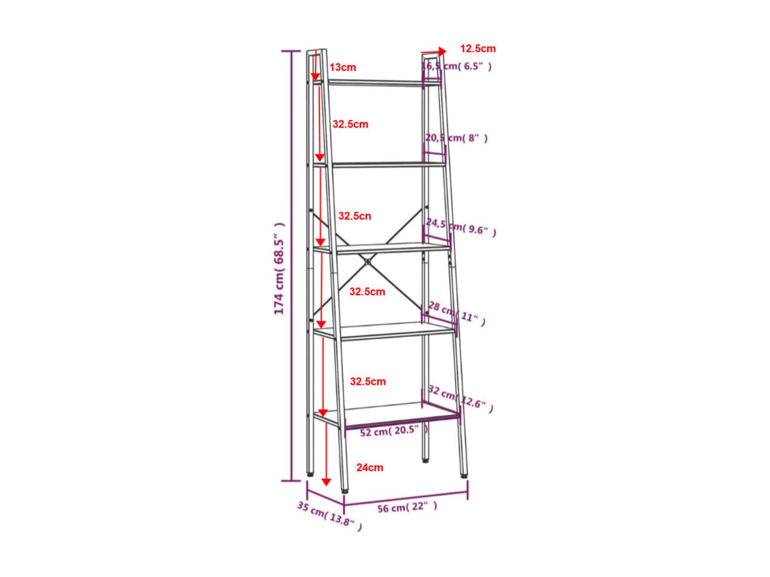 Scaffale a 5 ripiani Nero 56x35x174 cm
