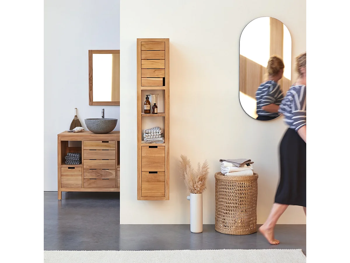 Scaffale a colonna in legno di teak con specchio 150 cm arredo bagno Tikamoon