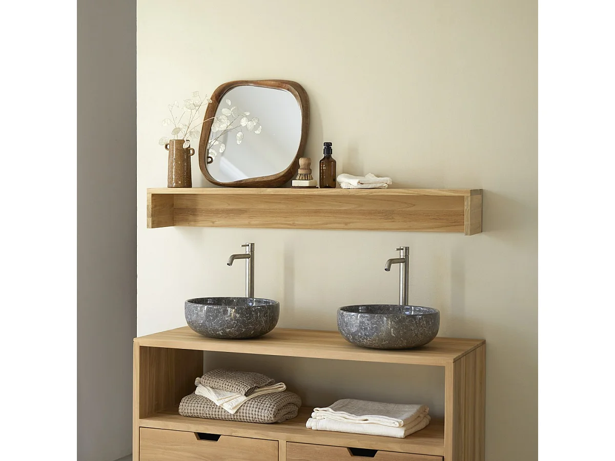 Scaffale orizzontale a parete per bagno in legno di Teak Bahya