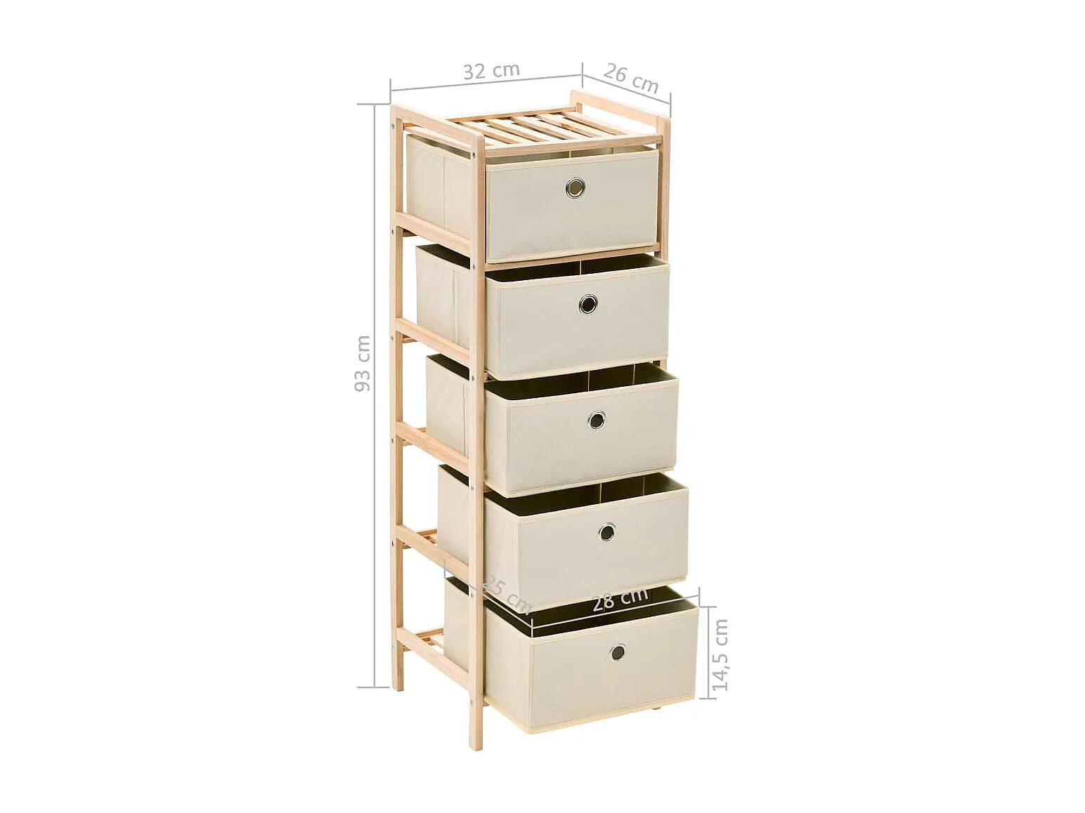 Scaffale con 5 Cesti in Tessuto in Legno di Cedro Beige