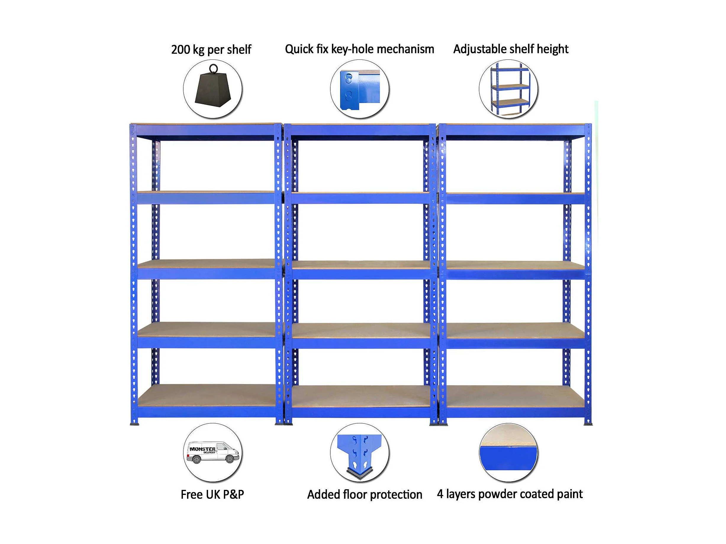 Scaffale da Garage ad Incastro Q-Rax - Blu - 3 Scaffali da 90cm e 2 Scaffali da 120cm