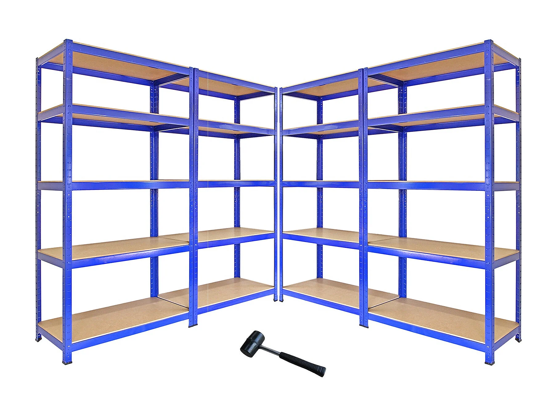 Scaffale da Garage ad Incastro T-Rax - Blu - 90cm x 45cm - 4 Pezzi con Martello e Connettori
