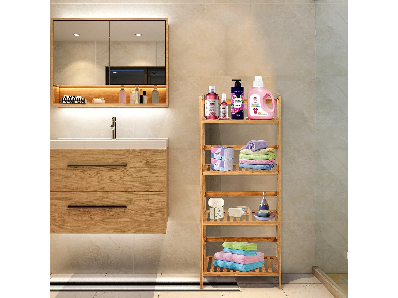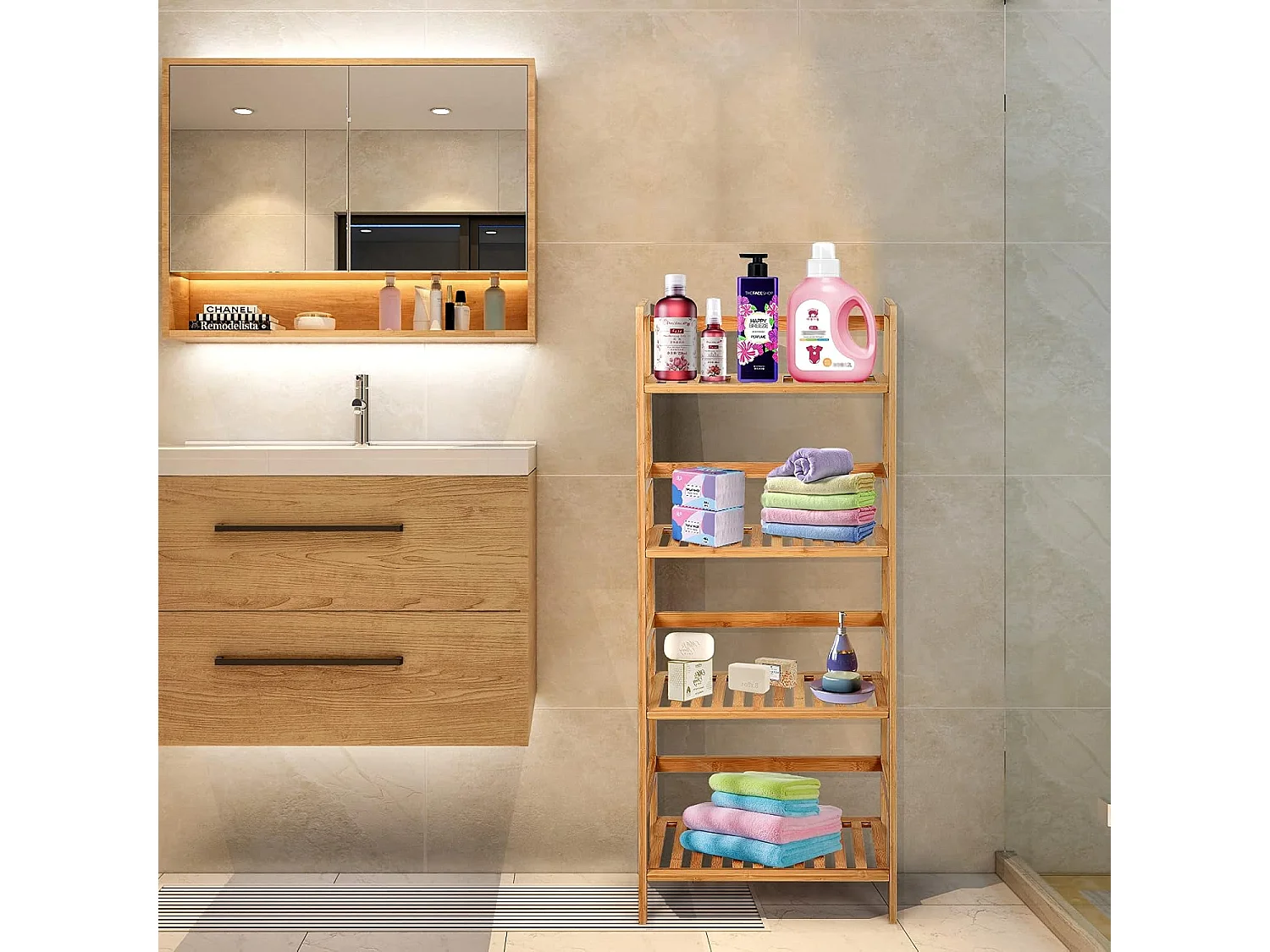 Scaffale multiuso con 4 livelli in bambù per soggiorno cucina ufficio, Libreria rustica con solida struttura Naturale