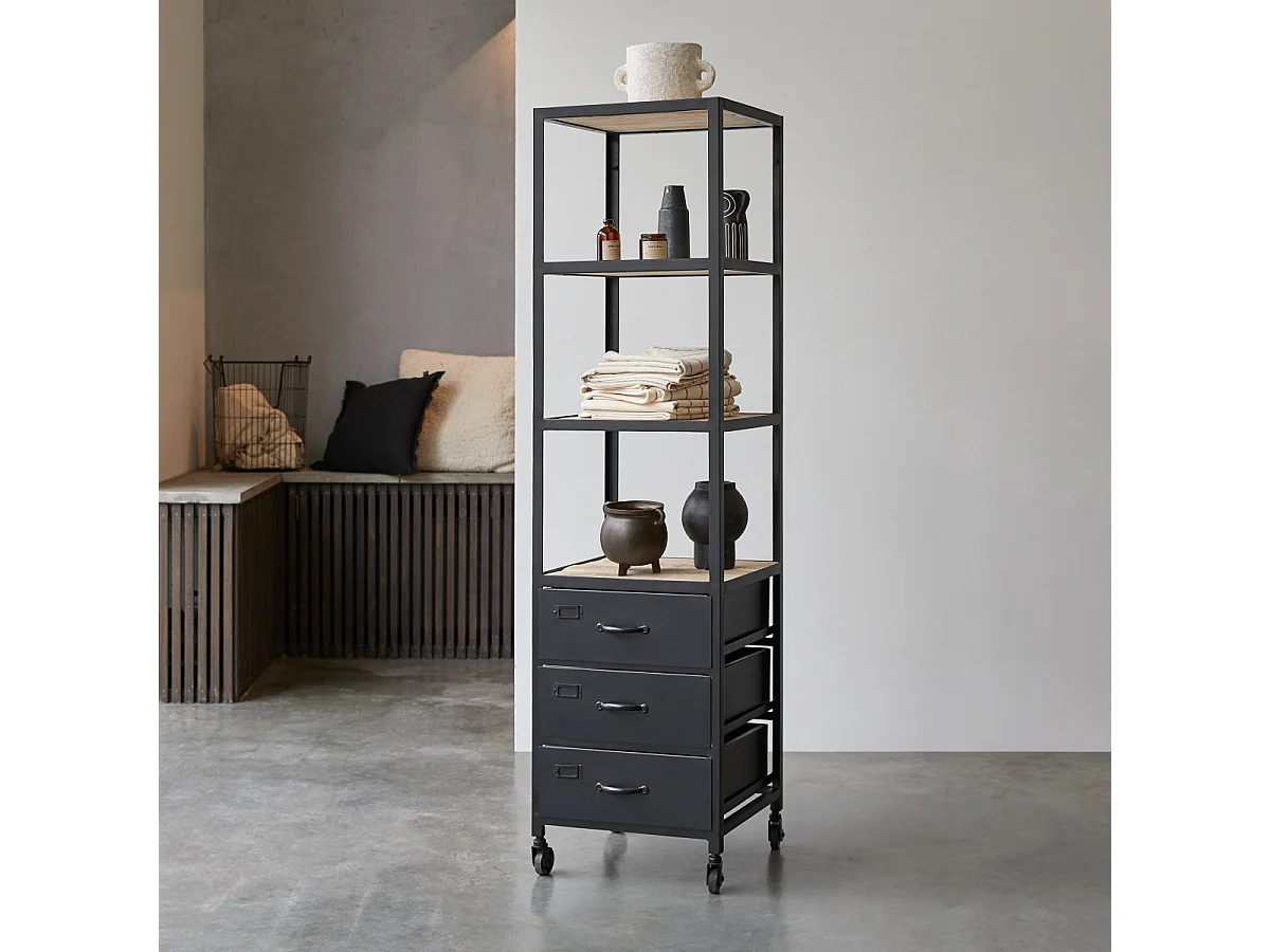 Scaffale per il bagno in metallo e legno di mango 170 Industriel