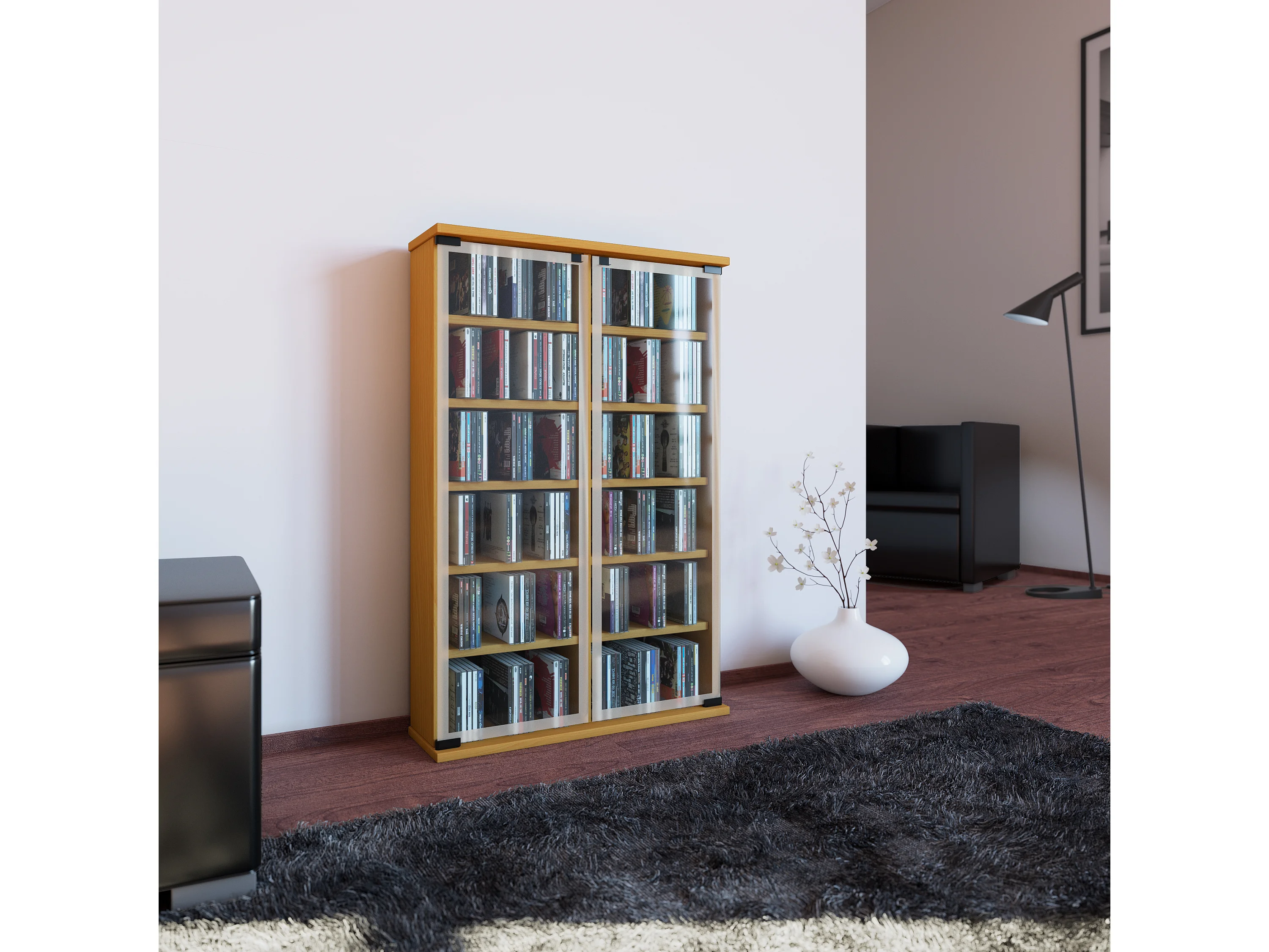 Legno CD DVD Stand Shelf Gallery Porta di vetro