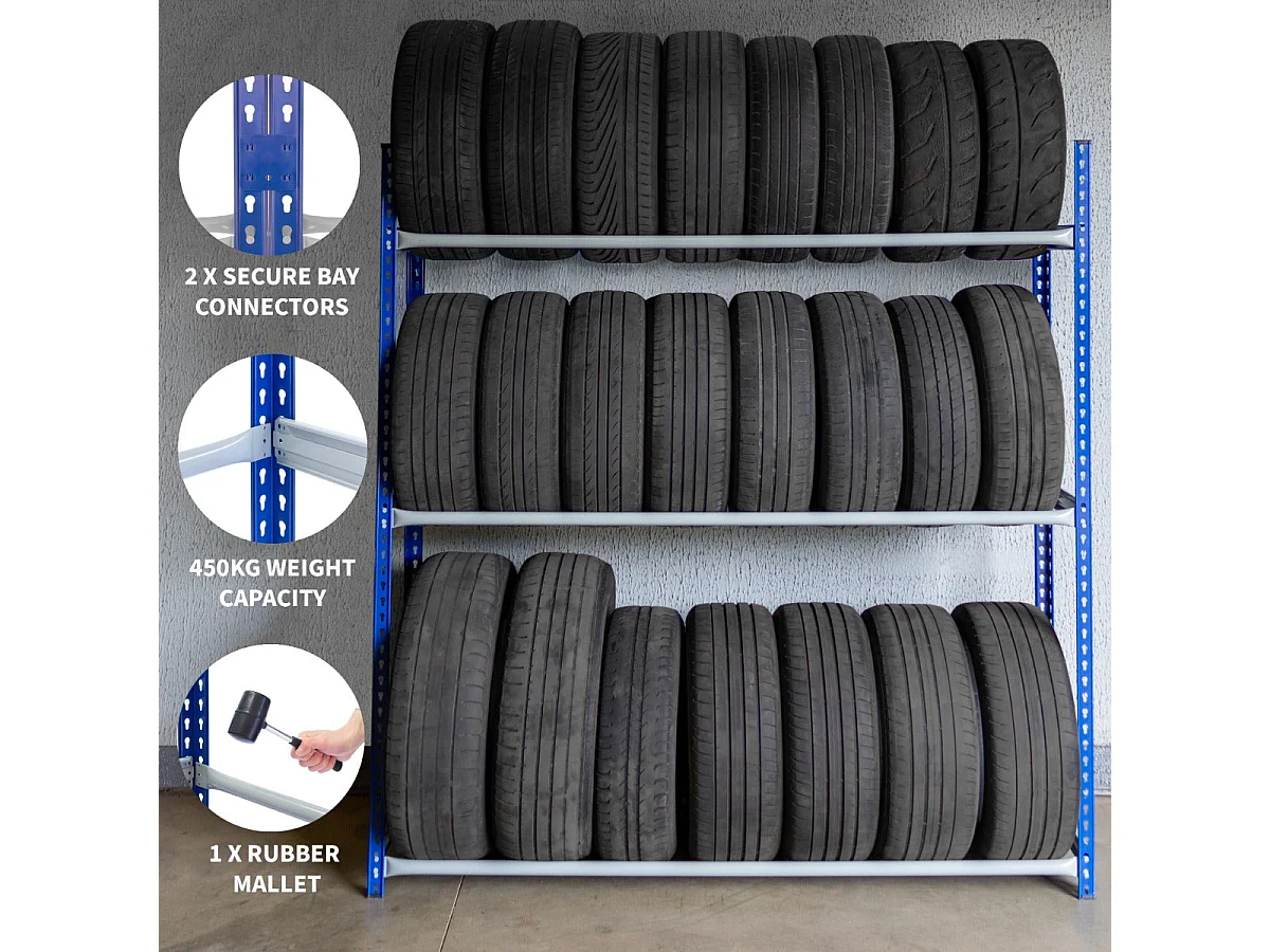 Scaffale da Garage ad Incastro T-Rax - Blu - 90cm x 45cm - 3 Pezzi con Connettori