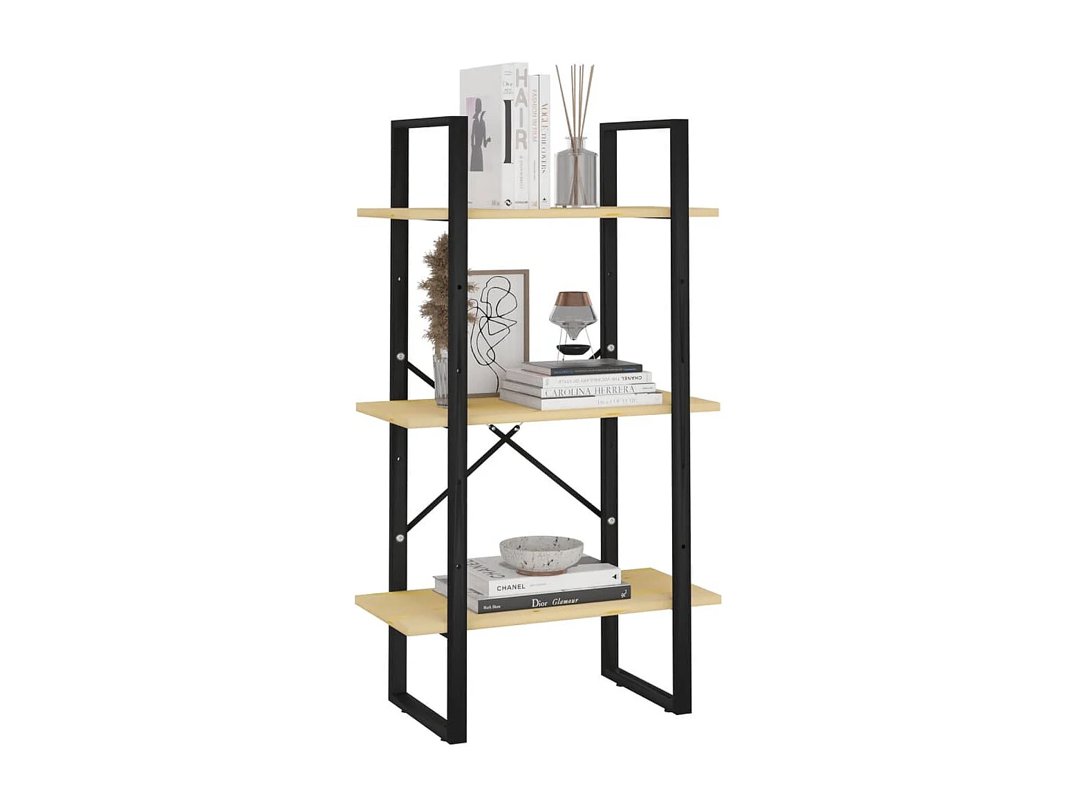 Libreria a 3 ripiani in rovere affumicato 60x30x80 cm in legno ingegnerizzato