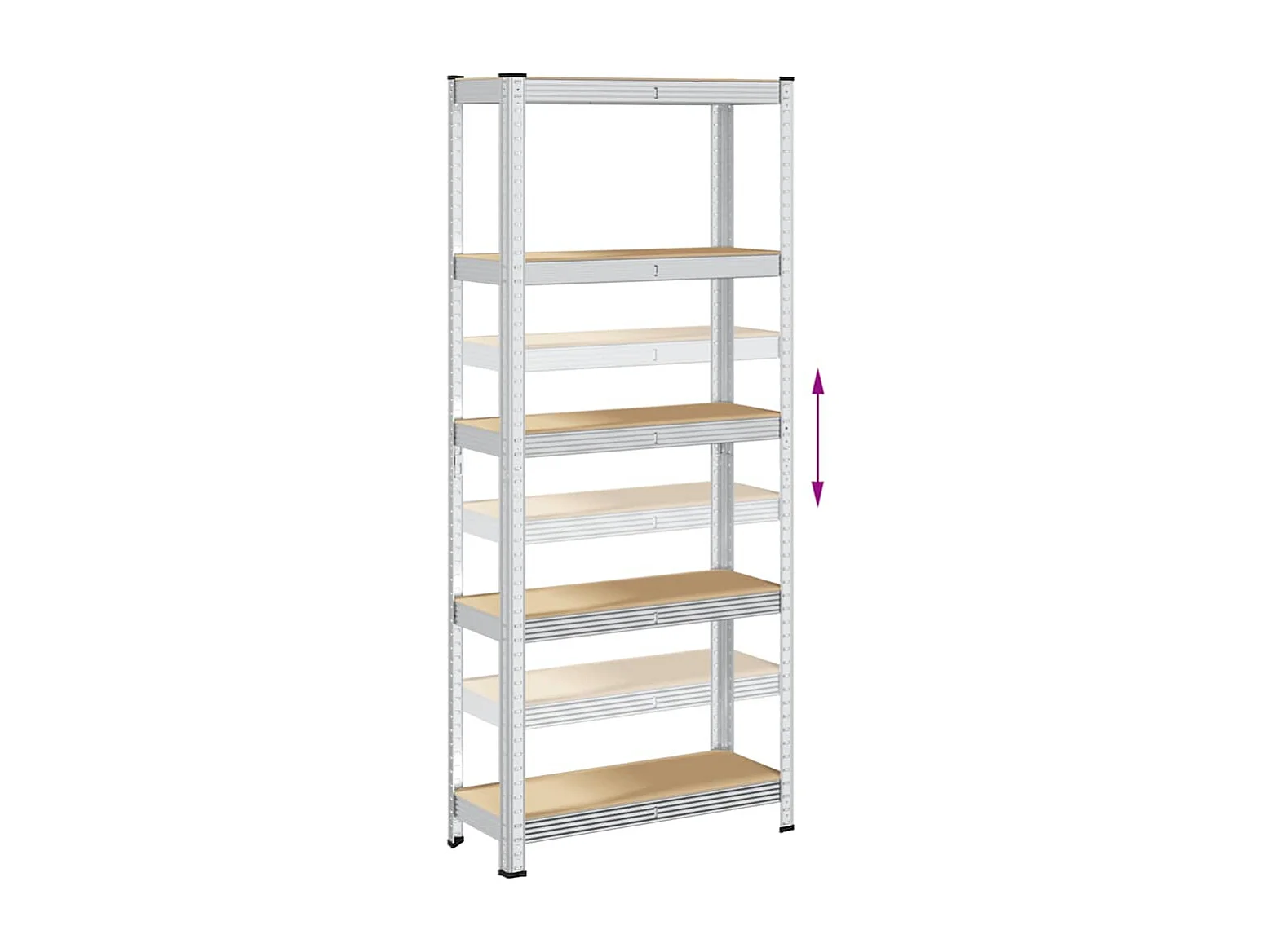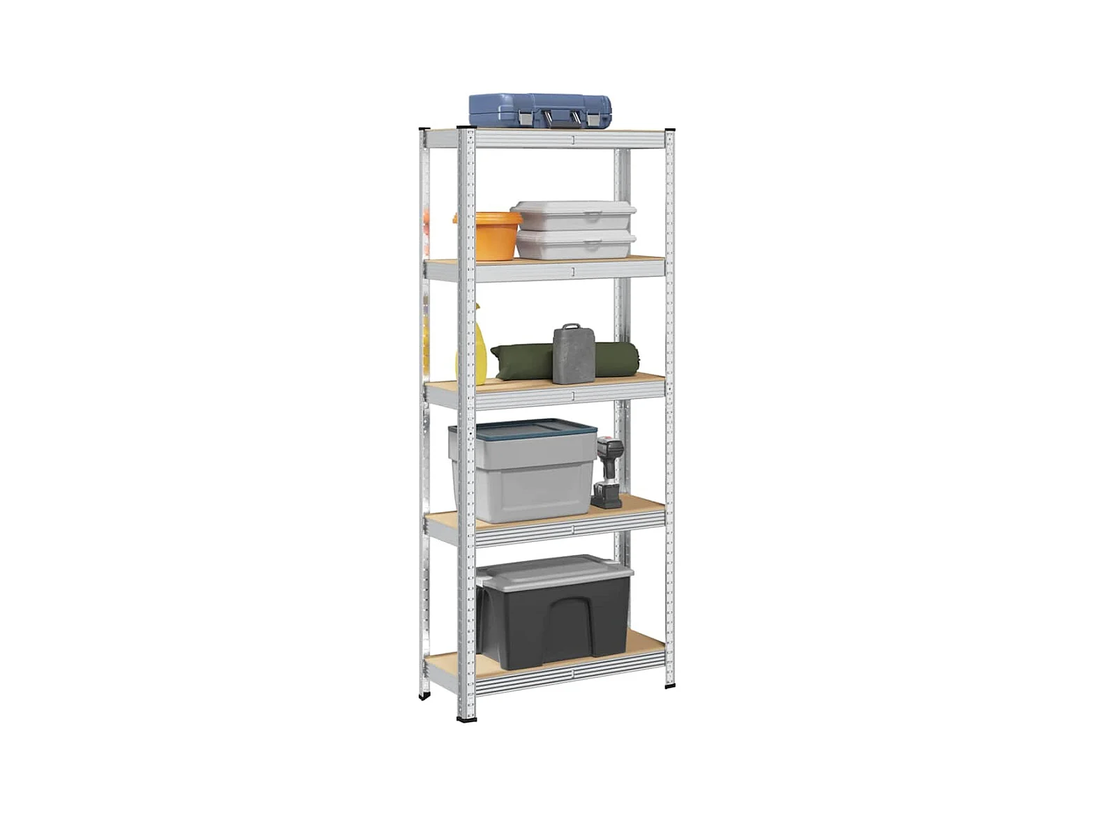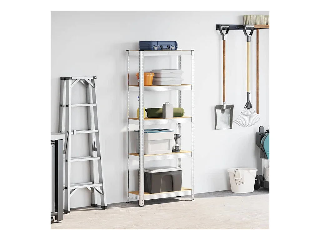 Scaffale portaoggetti a 5 ripiani in acciaio argentato e legno ingegnerizzato