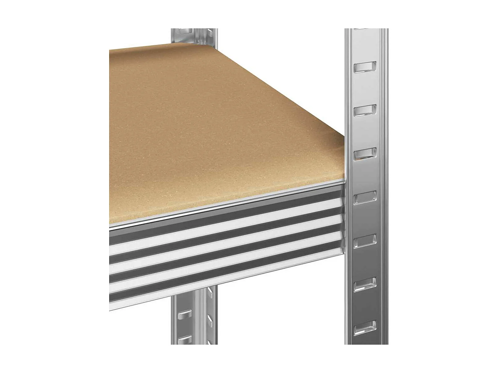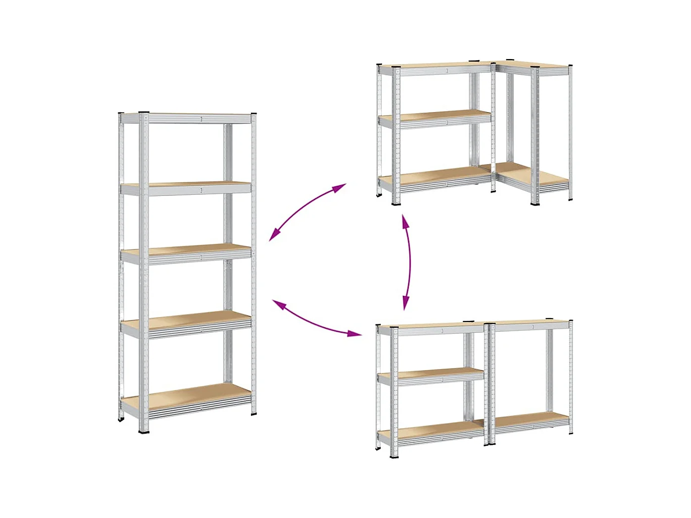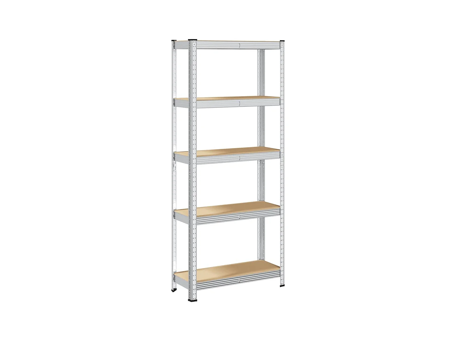 Scaffale portaoggetti a 5 ripiani in acciaio argentato e legno ingegnerizzato