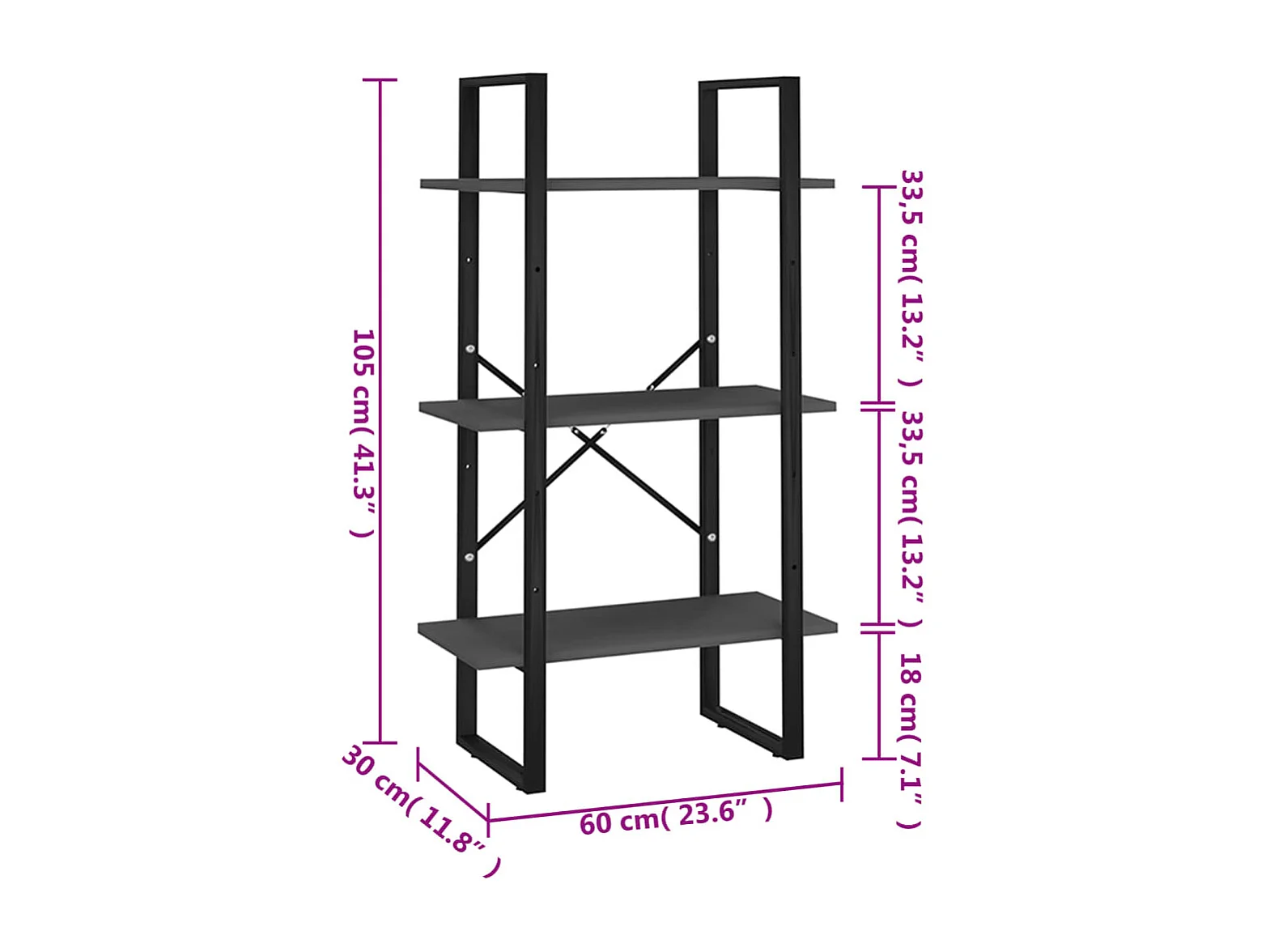 Scaffale portaoggetti grigio 60x30x105 cm in legno ingegnerizzato