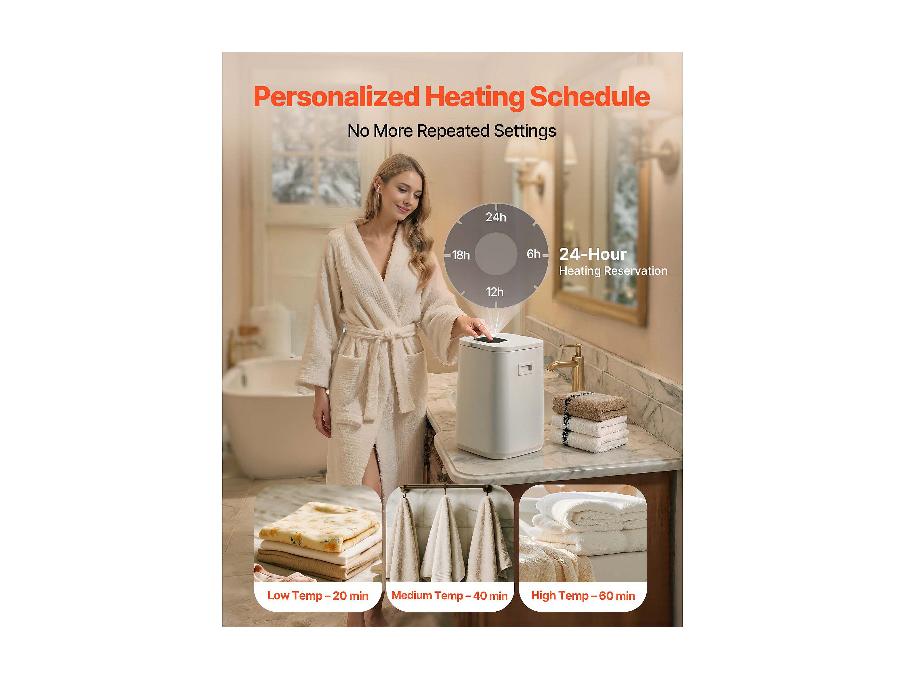 Asciugatoio Toaglie SucceBuy, Balde Calentatore Toaglie 20L, Schermo LED, Luce a U, Minuteria, Bianco