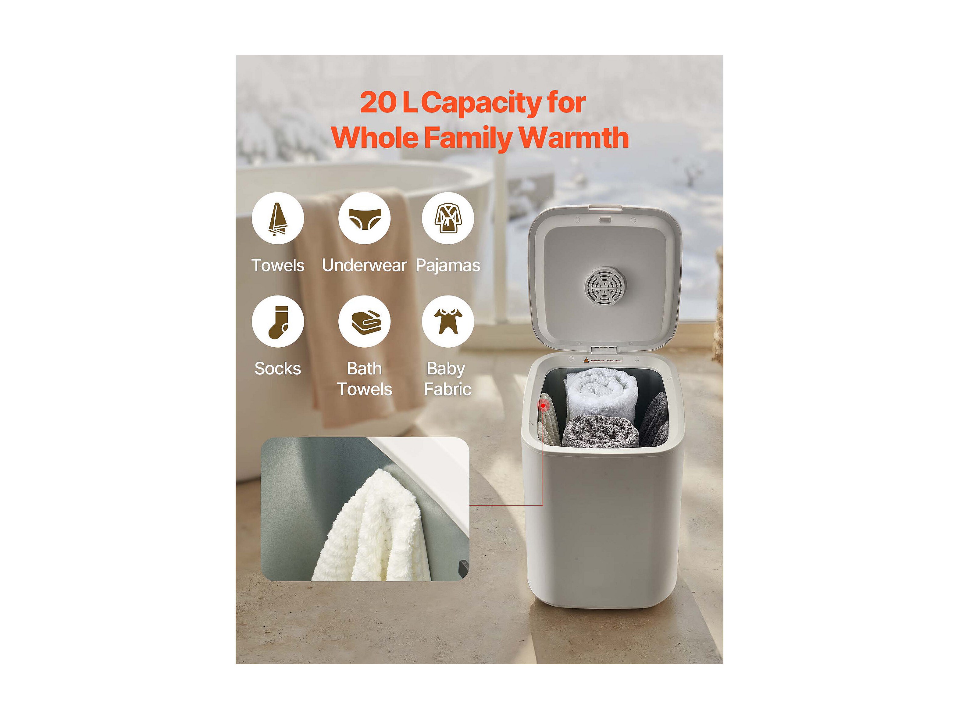 Scaldasciugamani 20 L SucceBuy, Secchiello Asciugasciugamani per Bagno, con Regolazione Temperatura, Timer 20/40/60/90 min e Spia LED