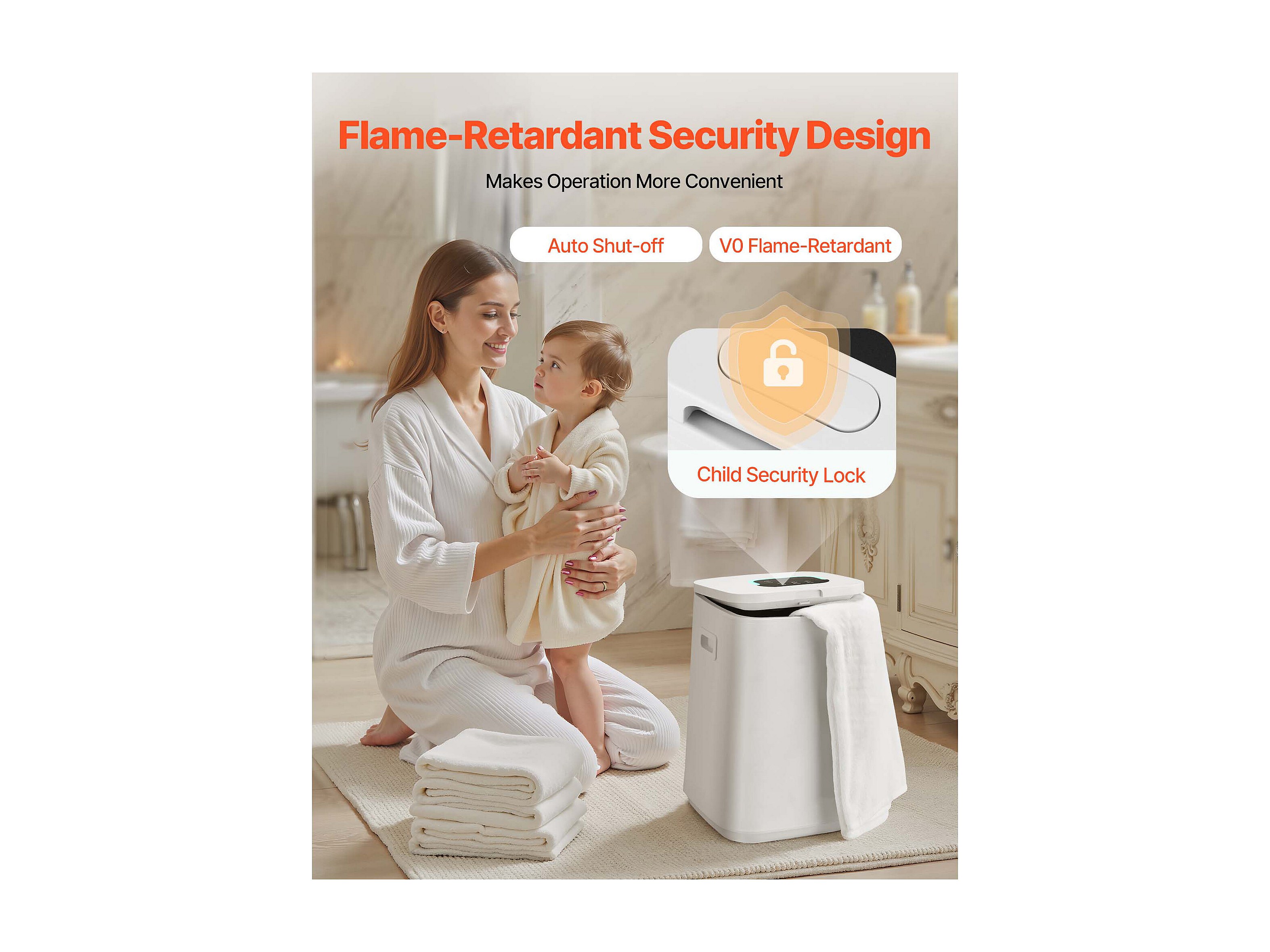Asciugatoio Toaglie SucceBuy, Balde Calentatore Toaglie 25L, Schermo LED, Scaldamento dal Fondo, Minuteria, Bianco