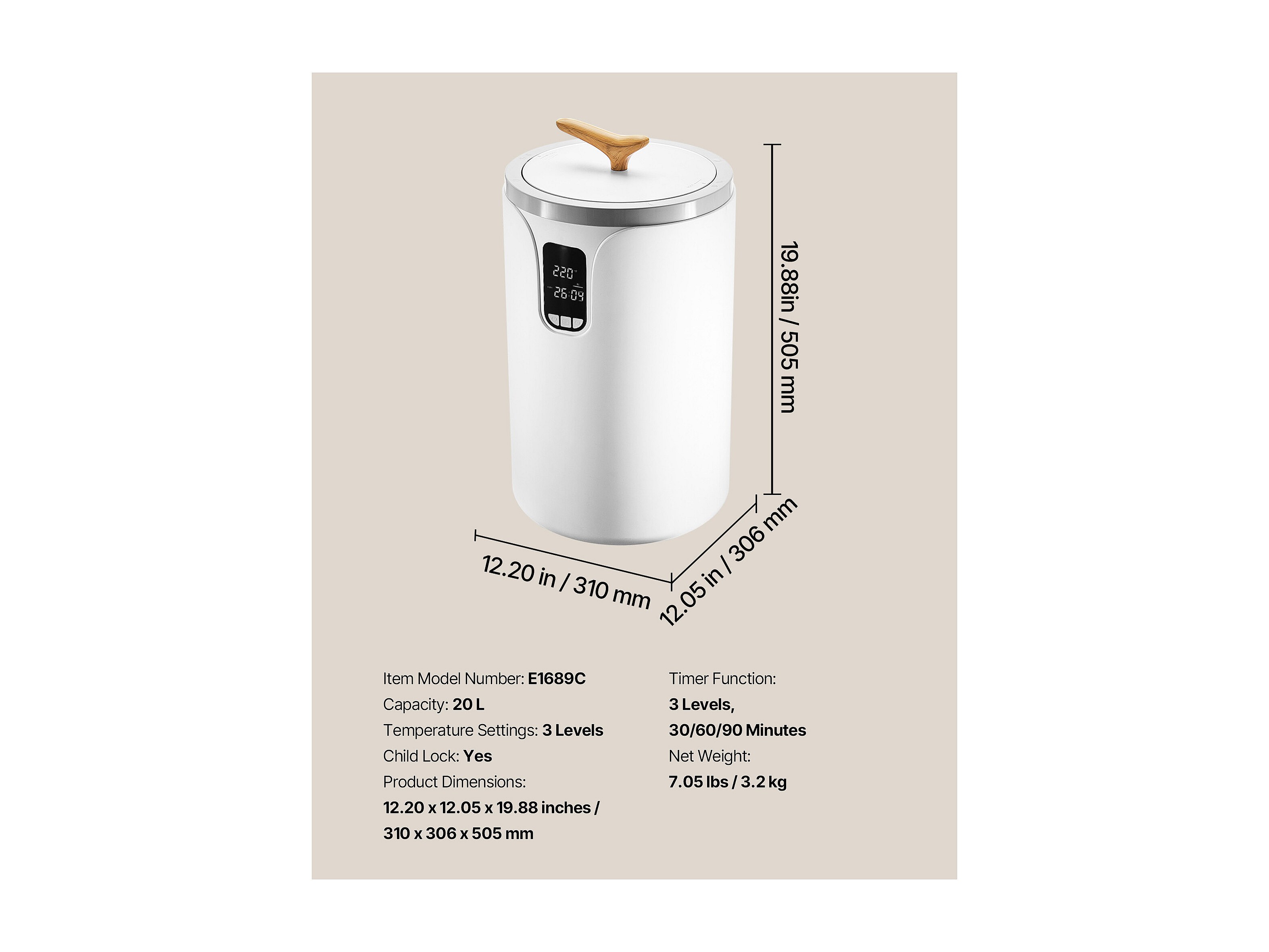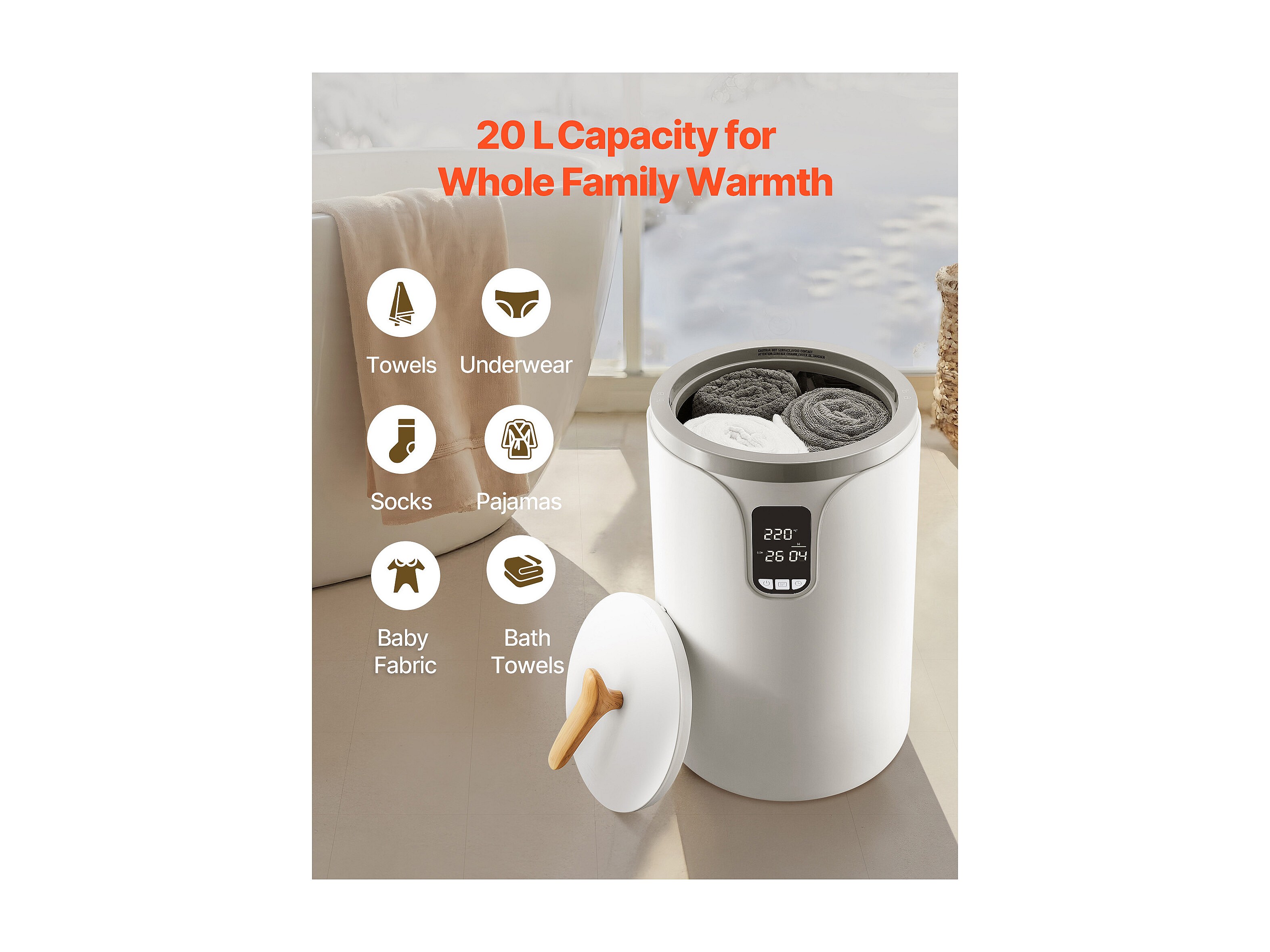 Scaldasciugamani 20 L SucceBuy, Secchiello Asciugasciugamani per Bagno, con Schermo LED, Regolazione Temperatura, Timer e Blocco di Sicurezza