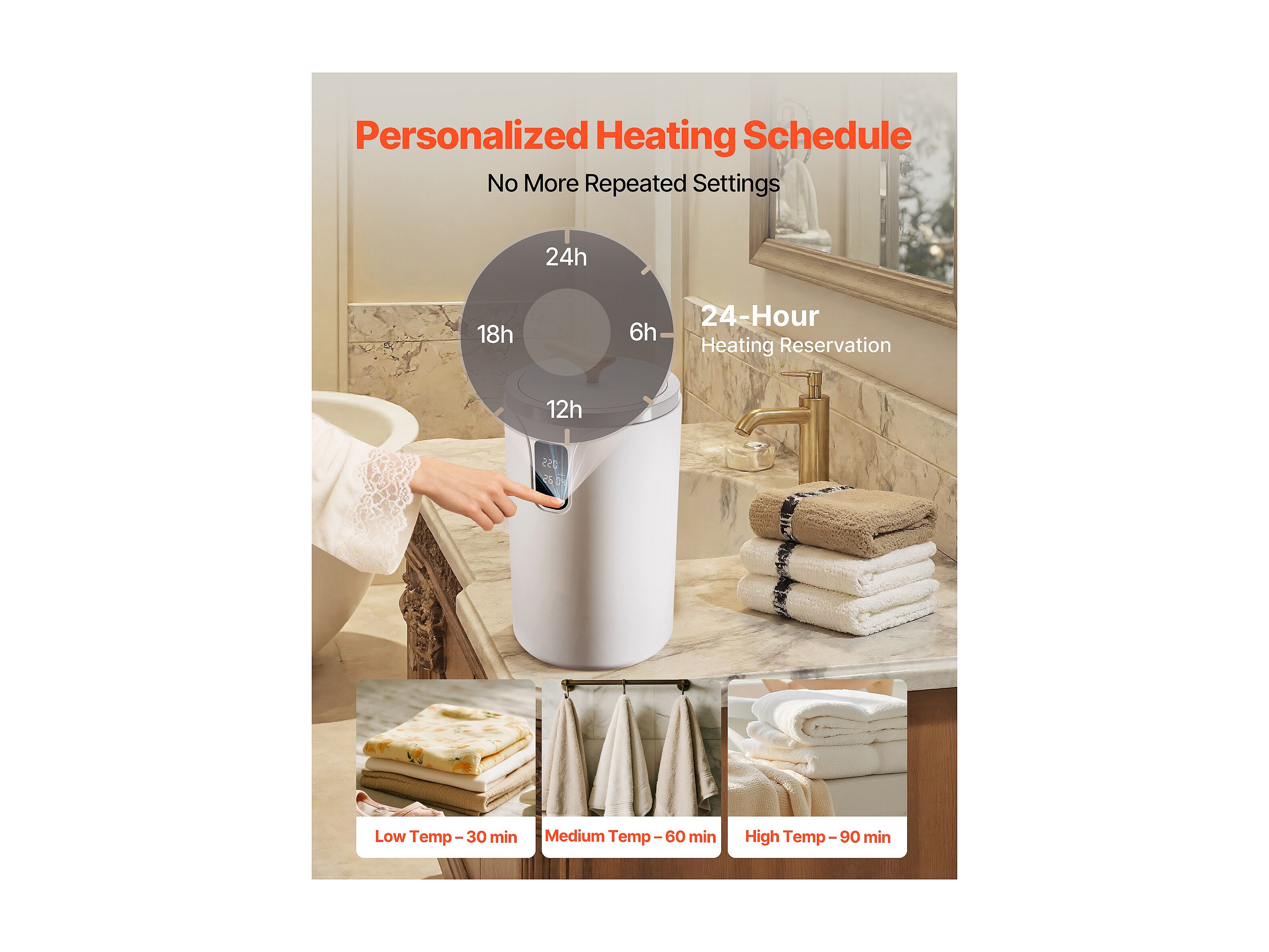 Asciugatoio Toaglie SucceBuy, Balde Calentatore Toaglie 25L, Schermo LED, Scaldamento dal Fondo, Minuteria, Bianco