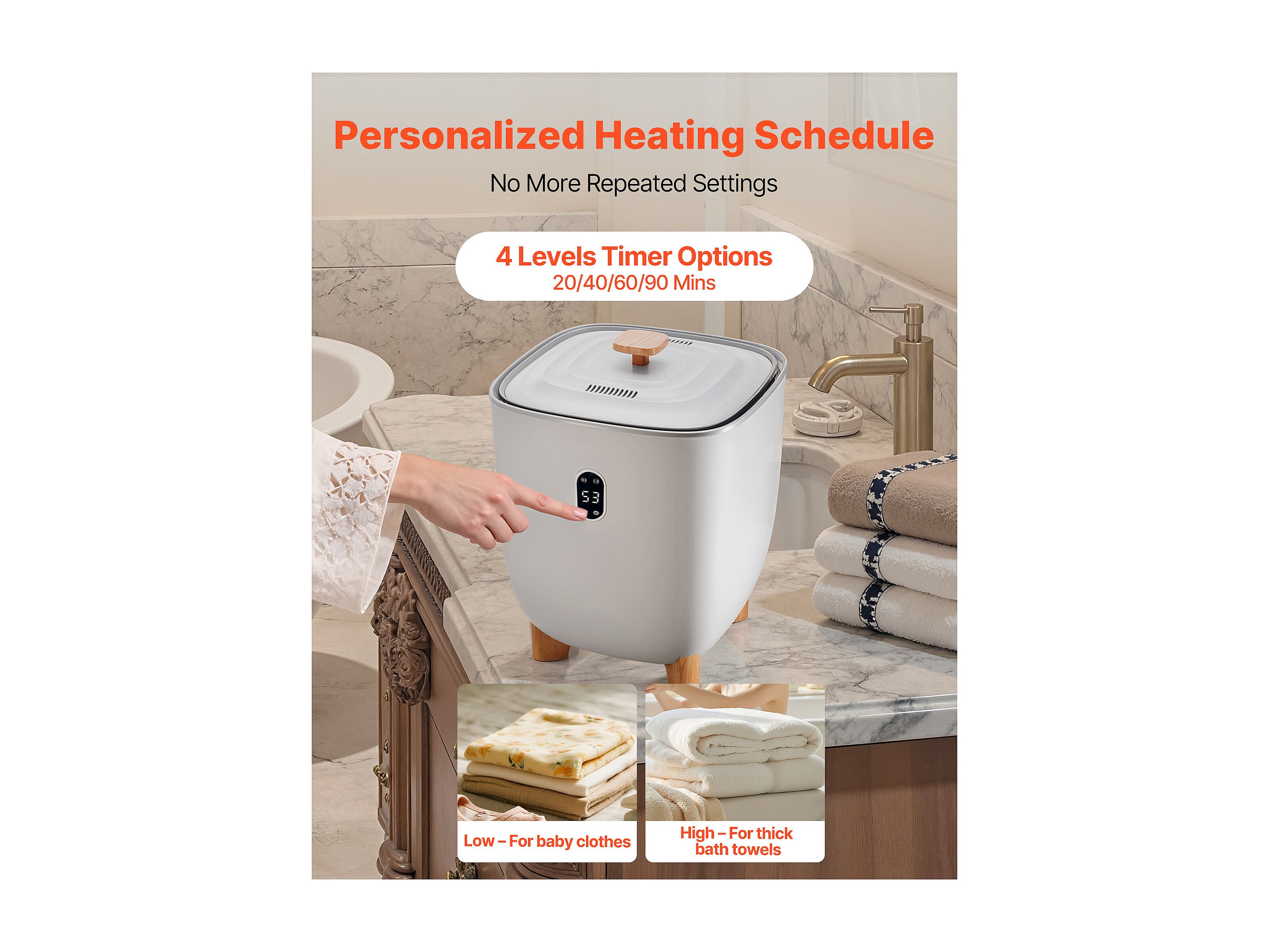Scaldasciugamani 20 L SucceBuy, Secchiello Asciugasciugamani per Bagno, con Regolazione Temperatura, Timer 20/40/60/90 min e Spia LED