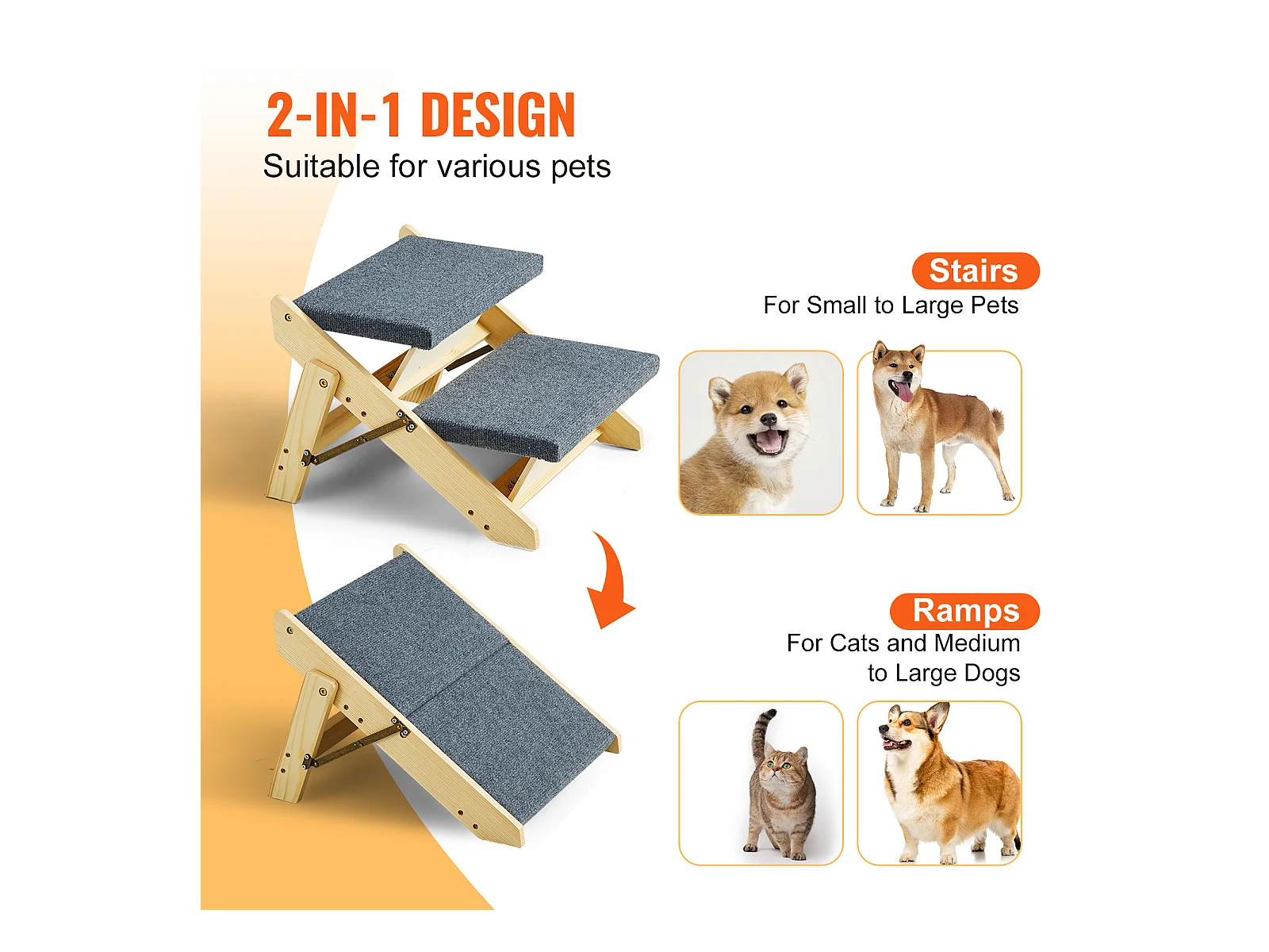 Scale per Cani, SucceBuy Scale in Legno per Animali Domestici 2 Gradini 2 in 1 Pieghevoli, Capacità 50 kg