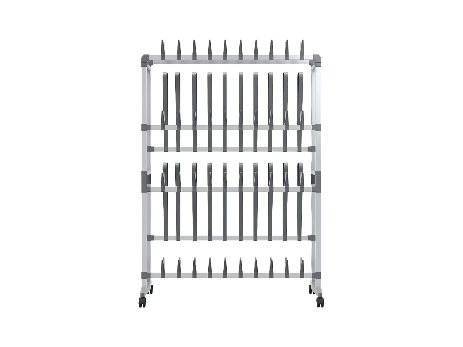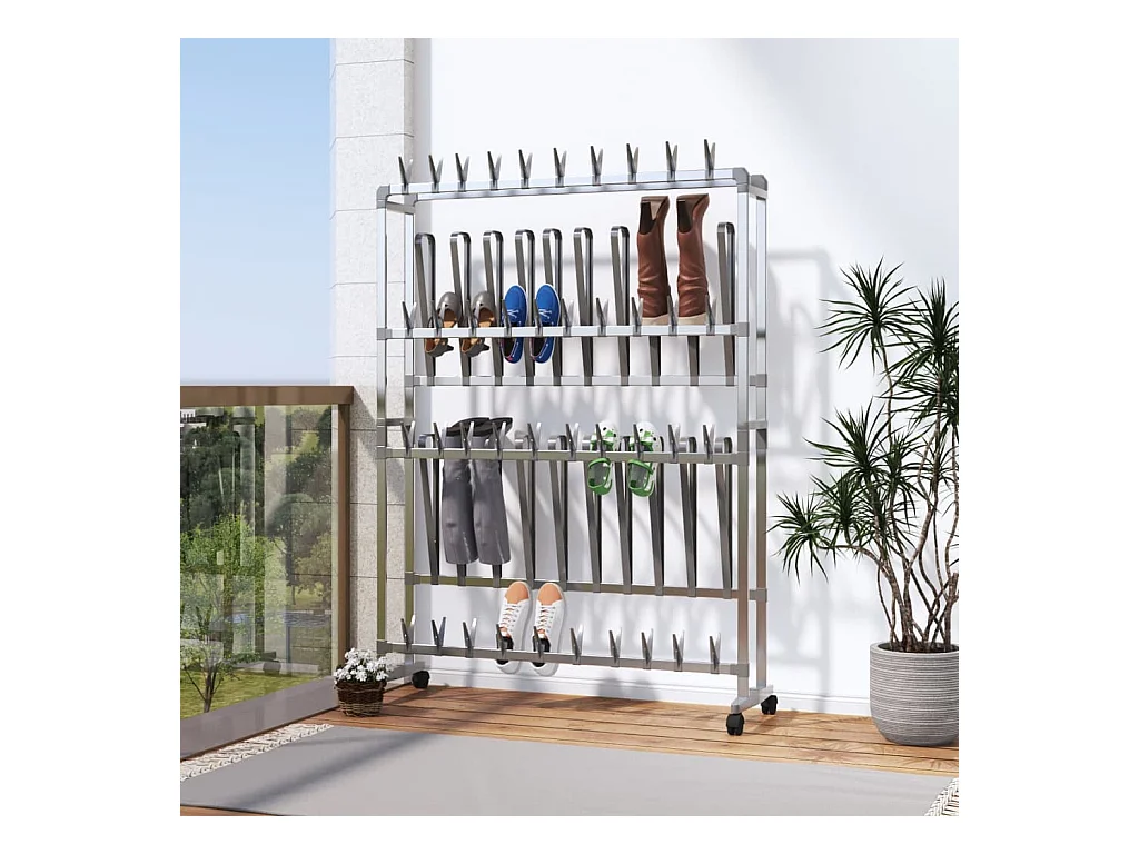 Scarpiera a 4 ripiani in metallo e tessuto non tessuto argento