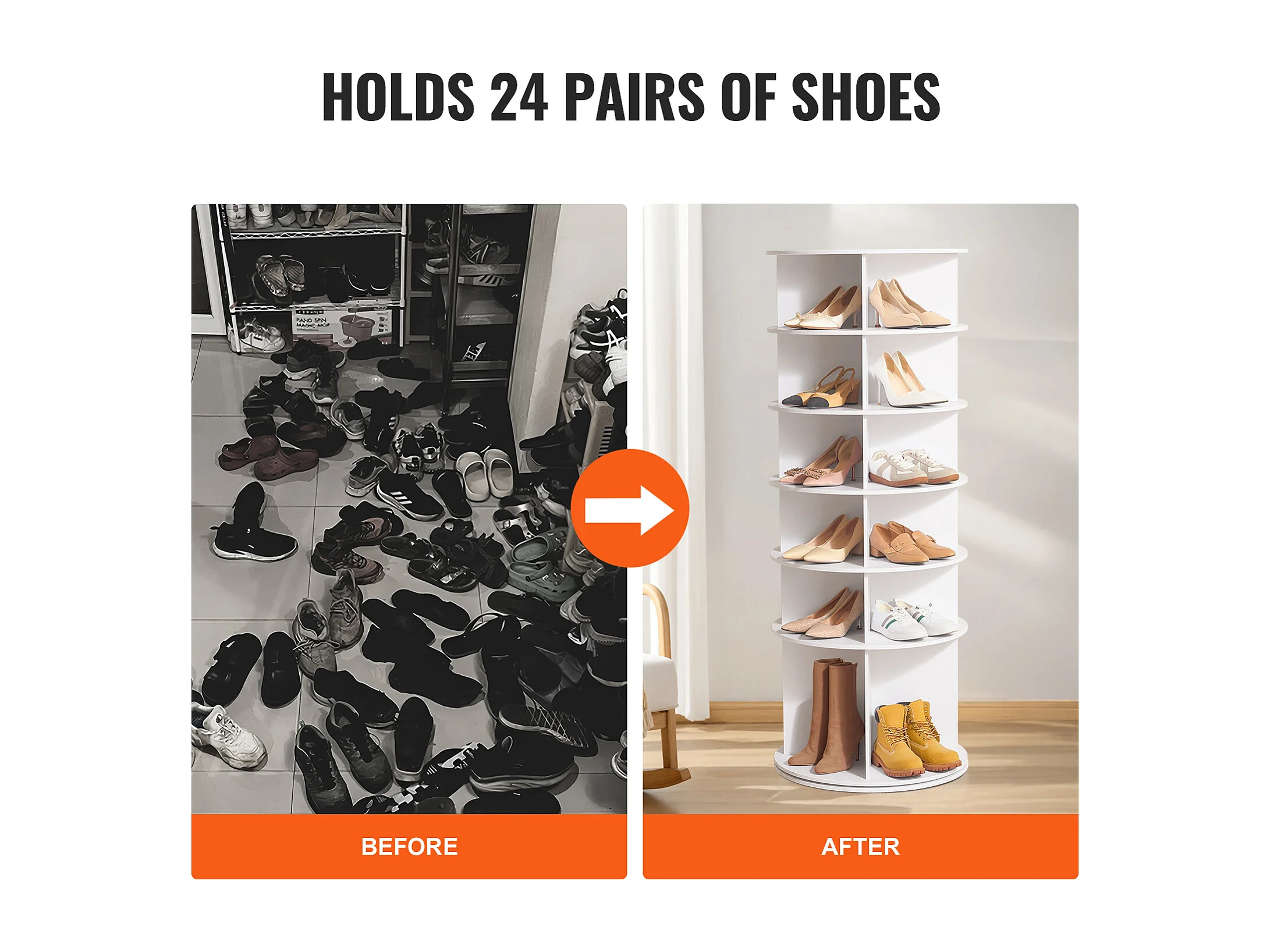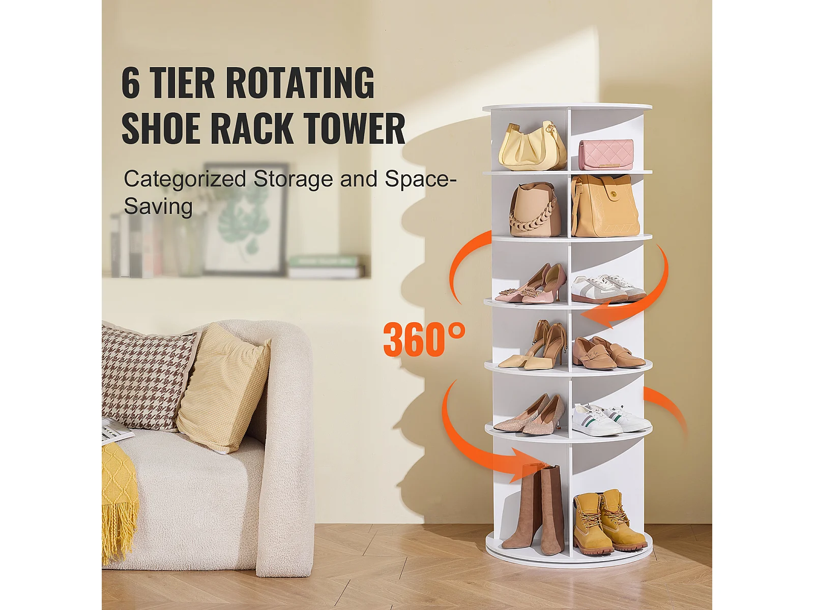 Mobile per Scarpe, SucceBuy Scaffale Girevole 6 Livelli Bianco con Rotazione Fluida Ottimizza lo Spazio per 36 Paia Ideale per Guardaroba e Ingressi