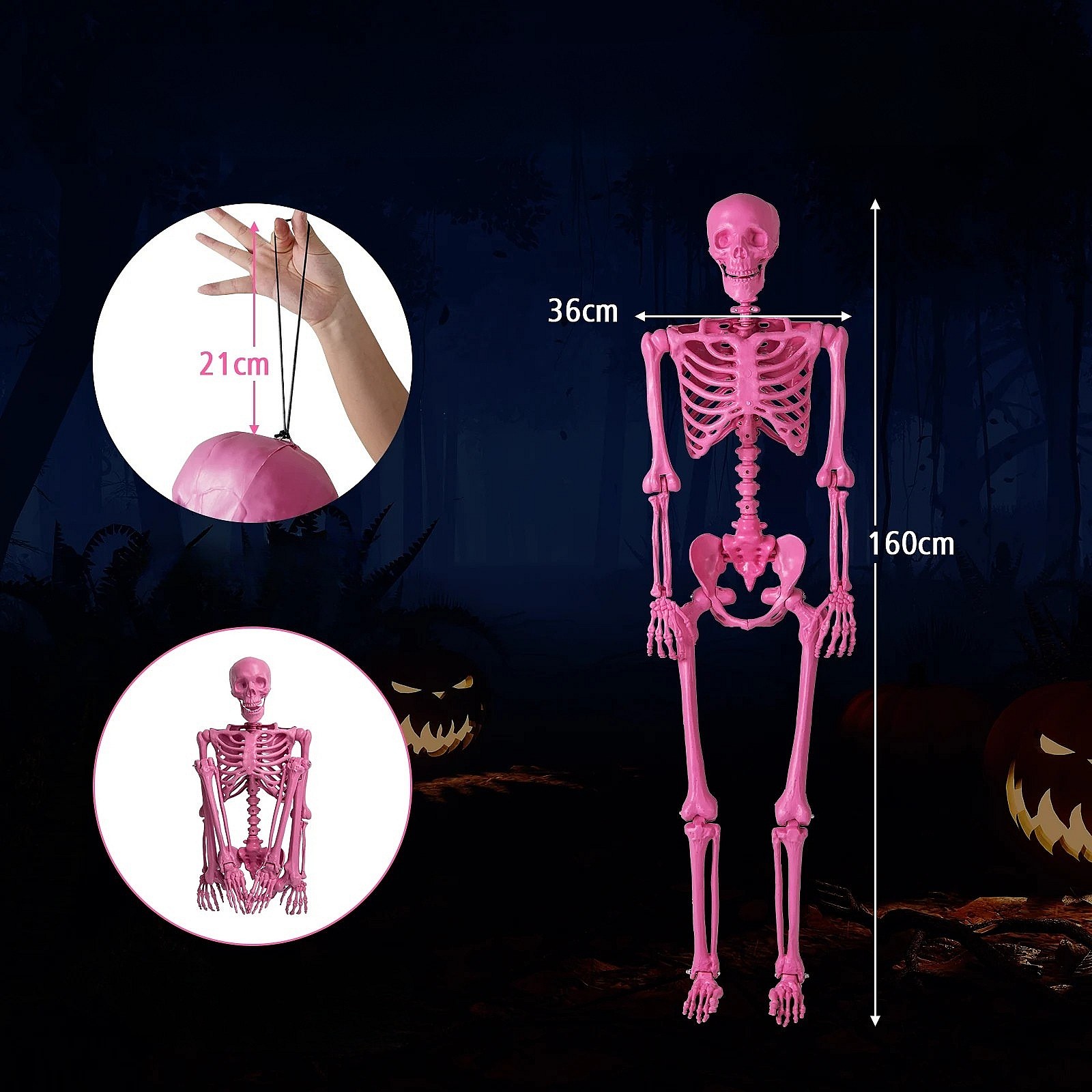 Scheletro di halloween da 160 cm, Scheletro a grandezza naturale con giunture mobili per decorazioni da cimitero Rosa