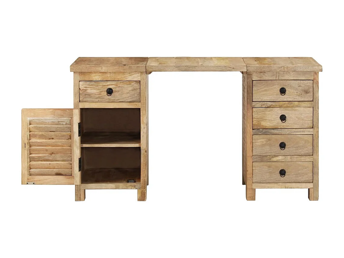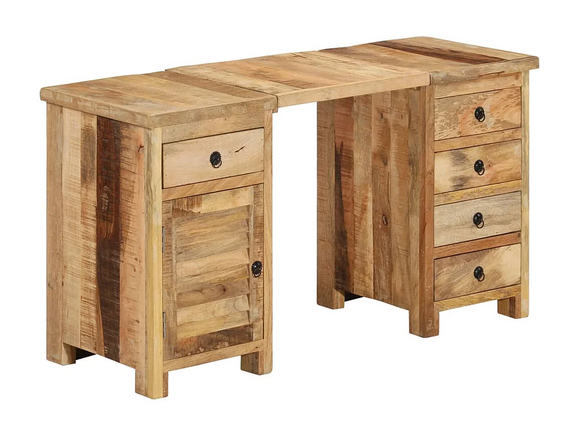 Scrivania a Colonna in Legno Massello di Mango 140x50x77 cm