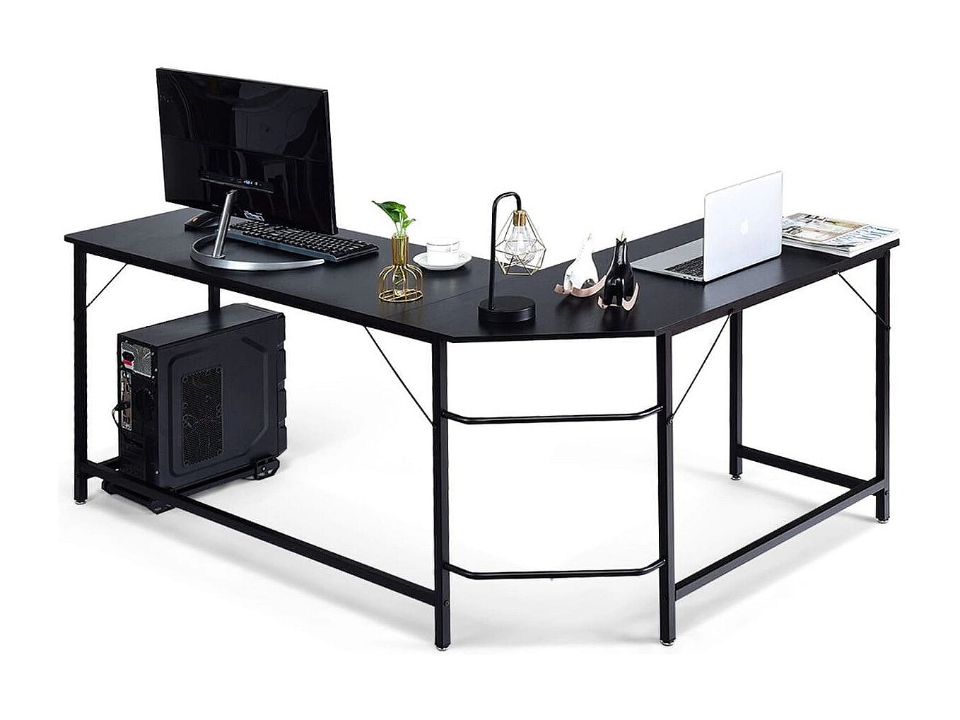 Scrivania ad angolo a forma L per ufficio, Tavolo ampio per computer in legno da casa 168x125x74cm Nero