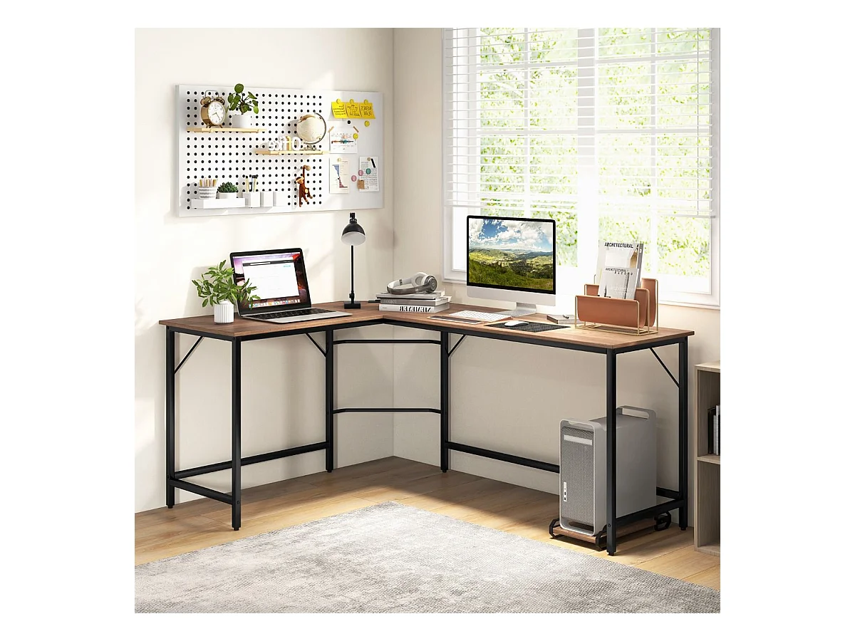 Scrivania ad angolo a forma L per ufficio, Tavolo ampio per computer in legno da casa 168x125x74cm Legno naturale