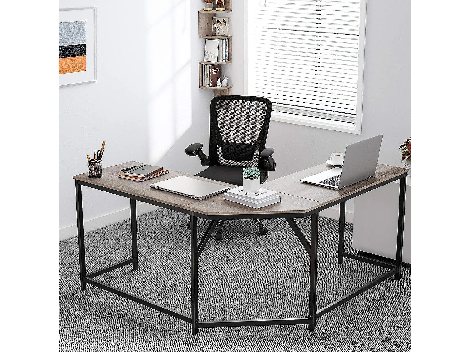 Scrivania per computer a forma di L con 2 mensole aperte, Scrivania angolare salva spazio per casa e ufficio Nero
