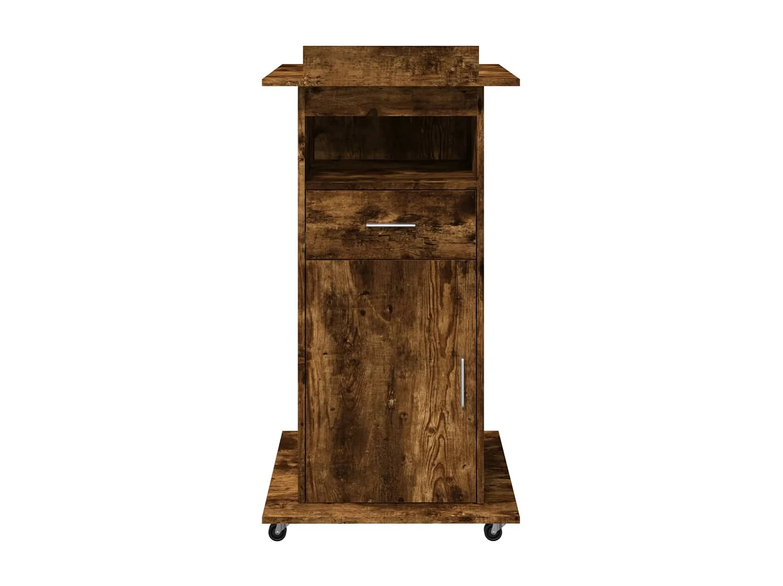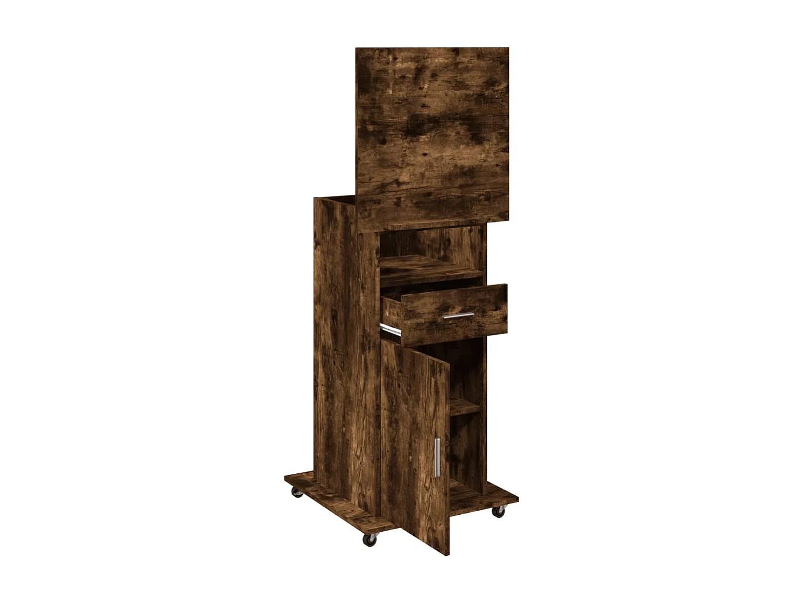 Scrivania con ruote e cassetto in legno ingegnerizzato di rovere affumicato