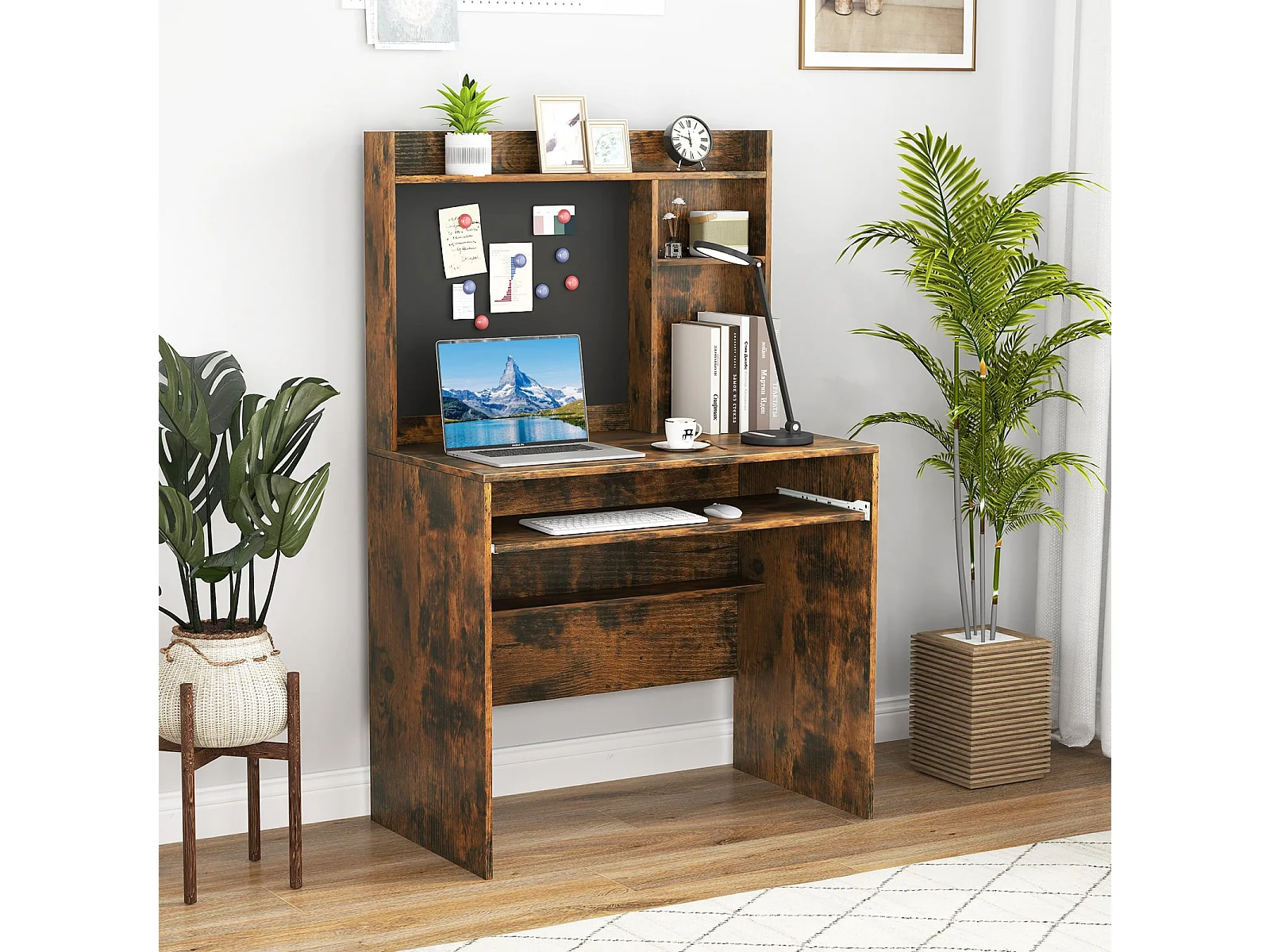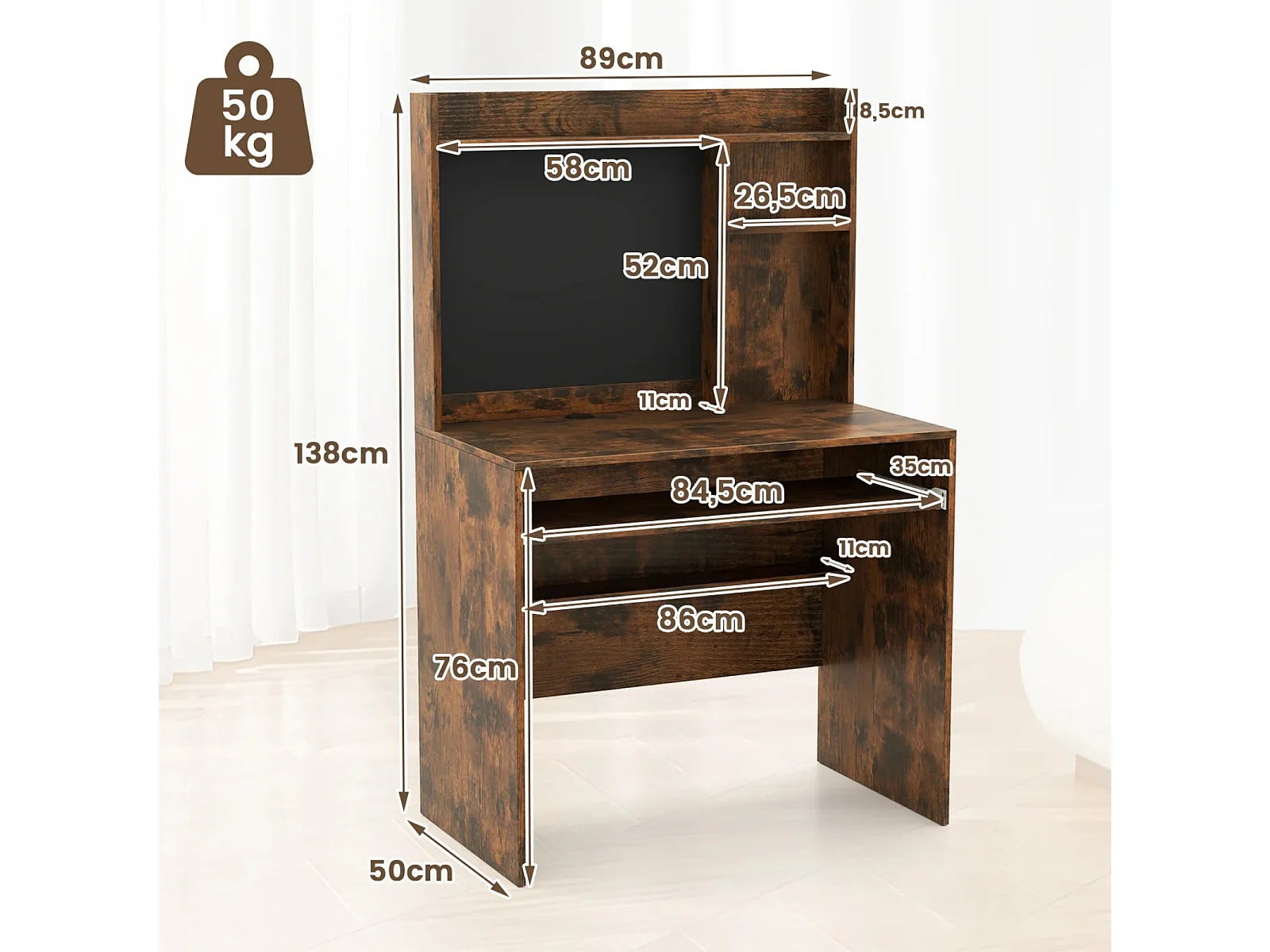 Scrivania per computer con lavagna magnetica, Scrivania moderna con ripiano e vassoio per tastiera Marrone