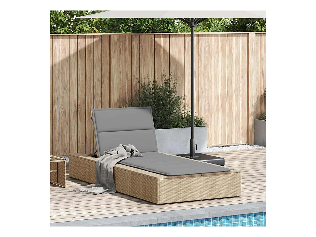 Chaise longue con cuscino beige 63x200x81 cm resina intrecciata