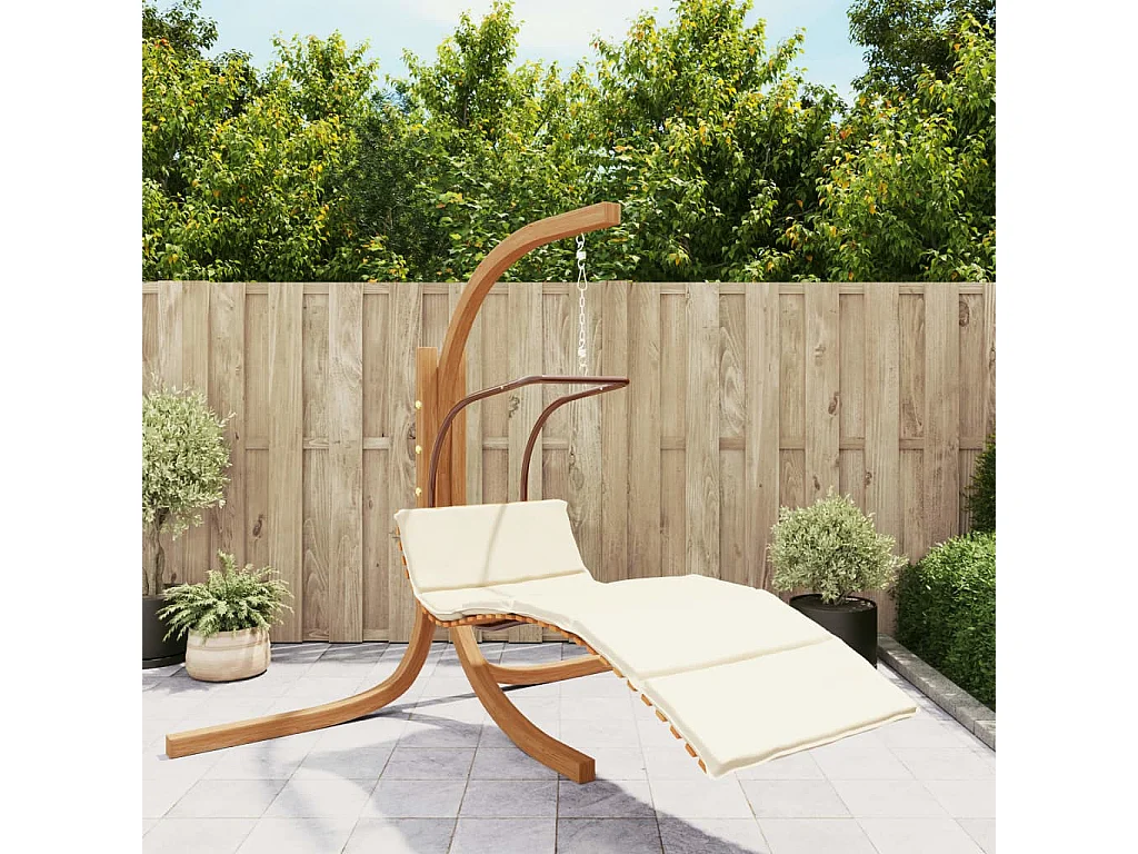 Sedia a dondolo con cuscino in tessuto e legno massello di pioppo