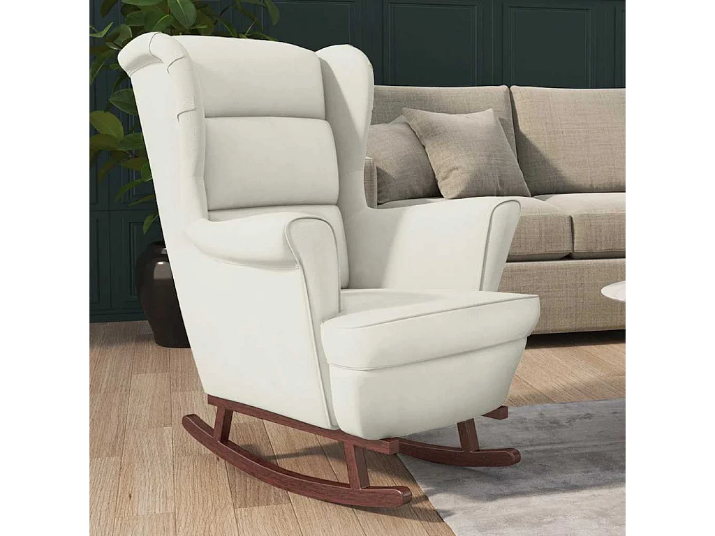 Sedia a dondolo con schienale alto in velluto crema