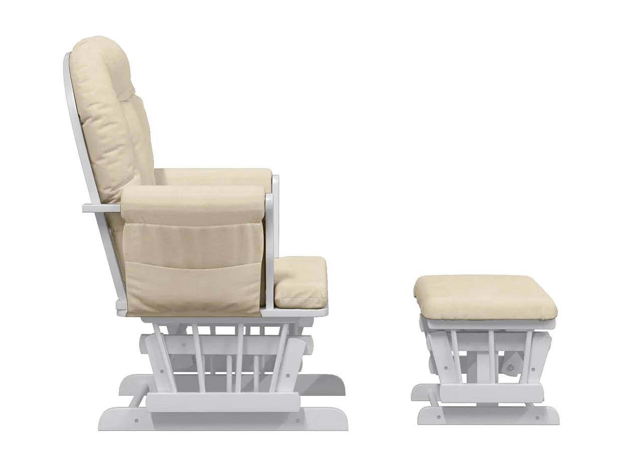 Sedia a dondolo con poggiapiedi Tessuto bianco crema