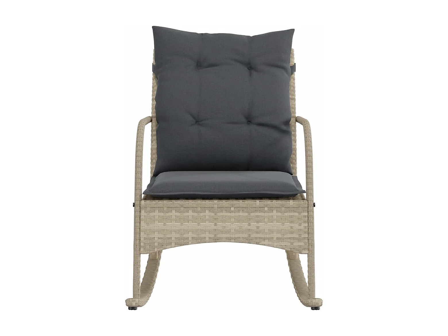 Sedia a dondolo da giardino con cuscini in polyrattan grigio chiaro