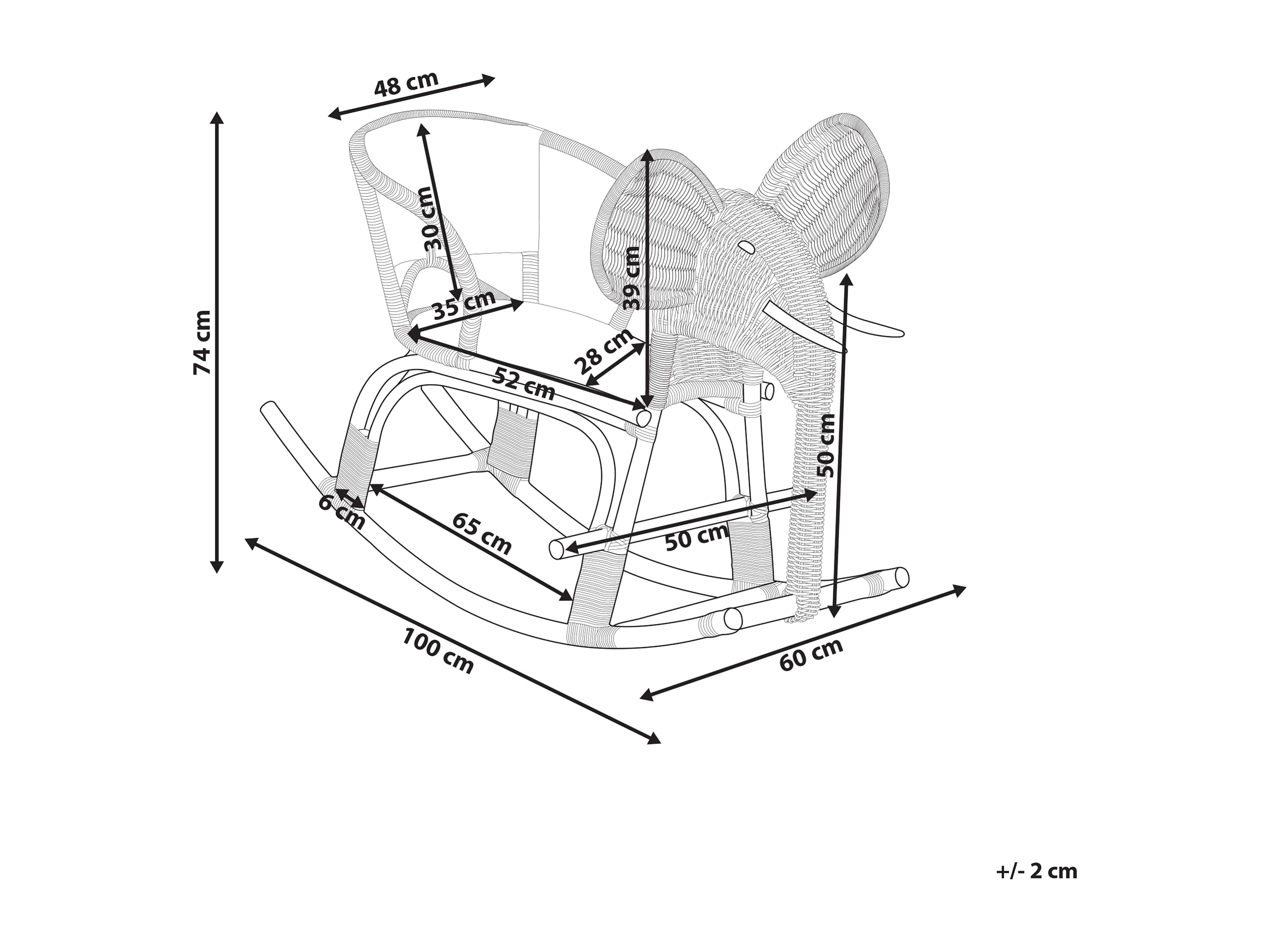 Sedia a dondolo per bambini rattan naturale AMPOLLINO