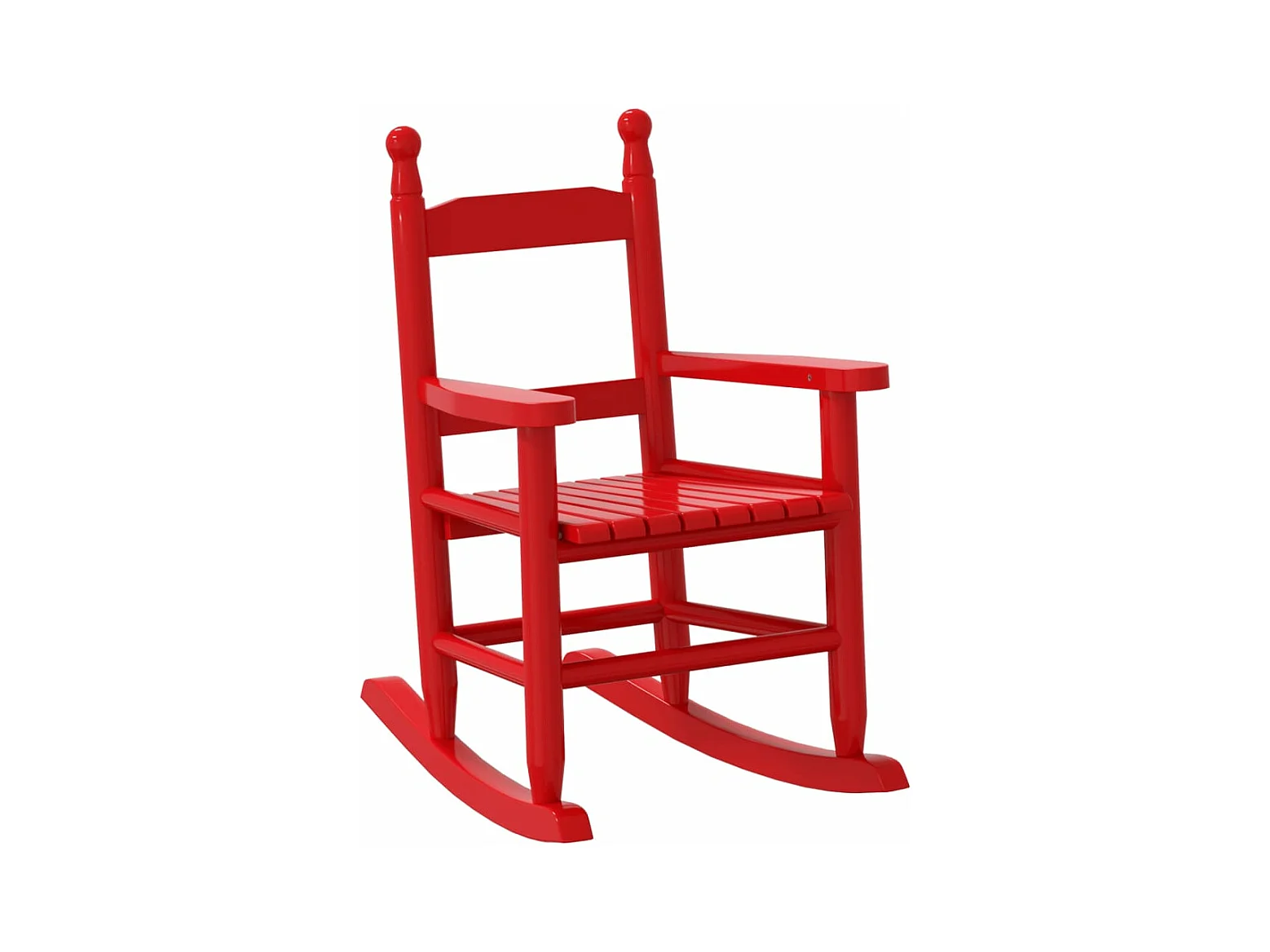 Sedia a dondolo rossa per bambini in legno massello di pioppo