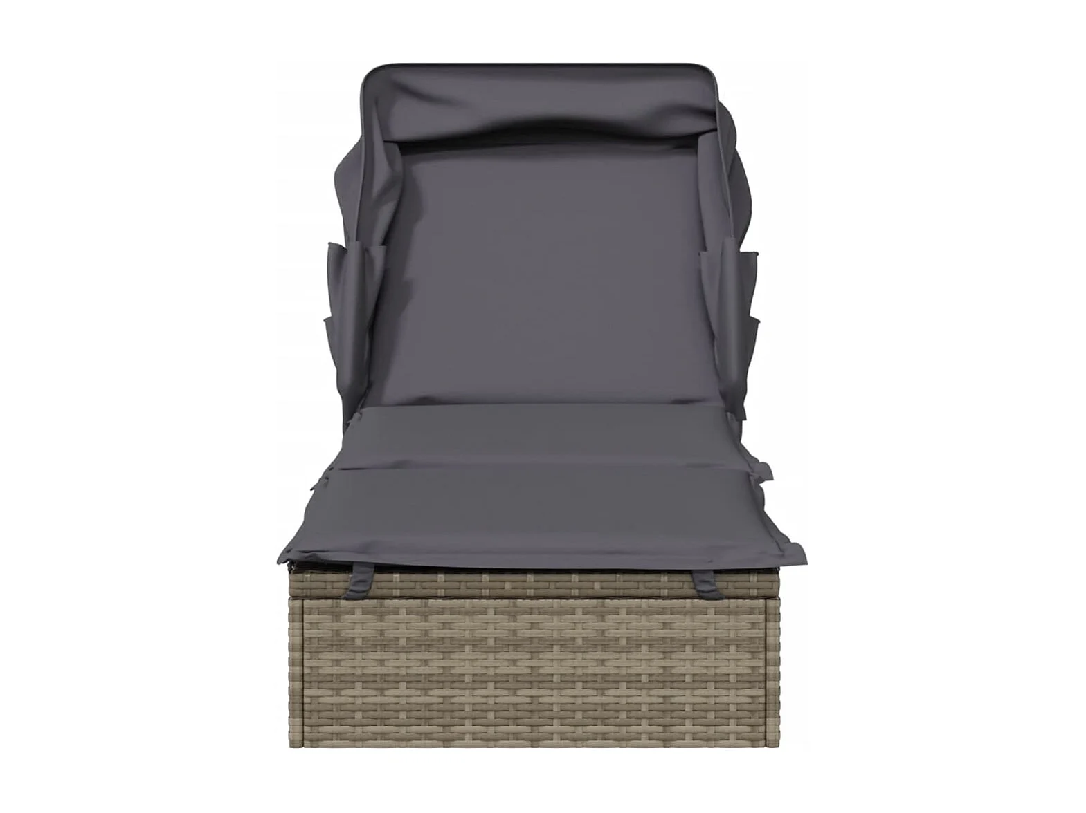 Sedia a sdraio con tetto pieghevole, grigio, 213x63x97 cm, resina intrecciata