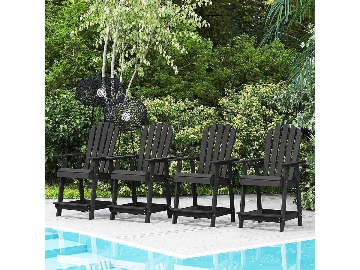 Sedia da bar per esterni con braccioli poggiapiedi, Sedia in HDPE alta adirondack resistente alle intemperie Nero