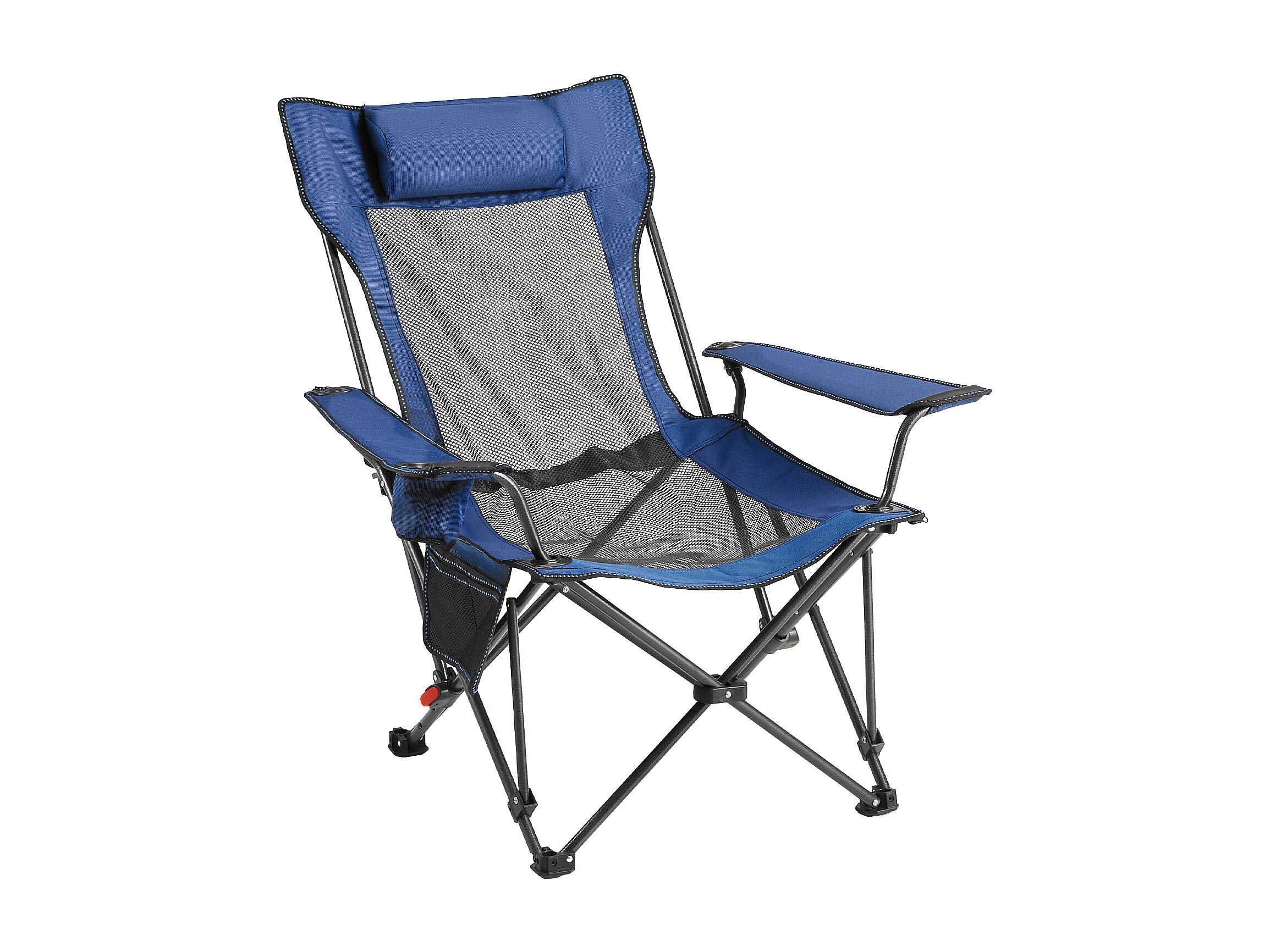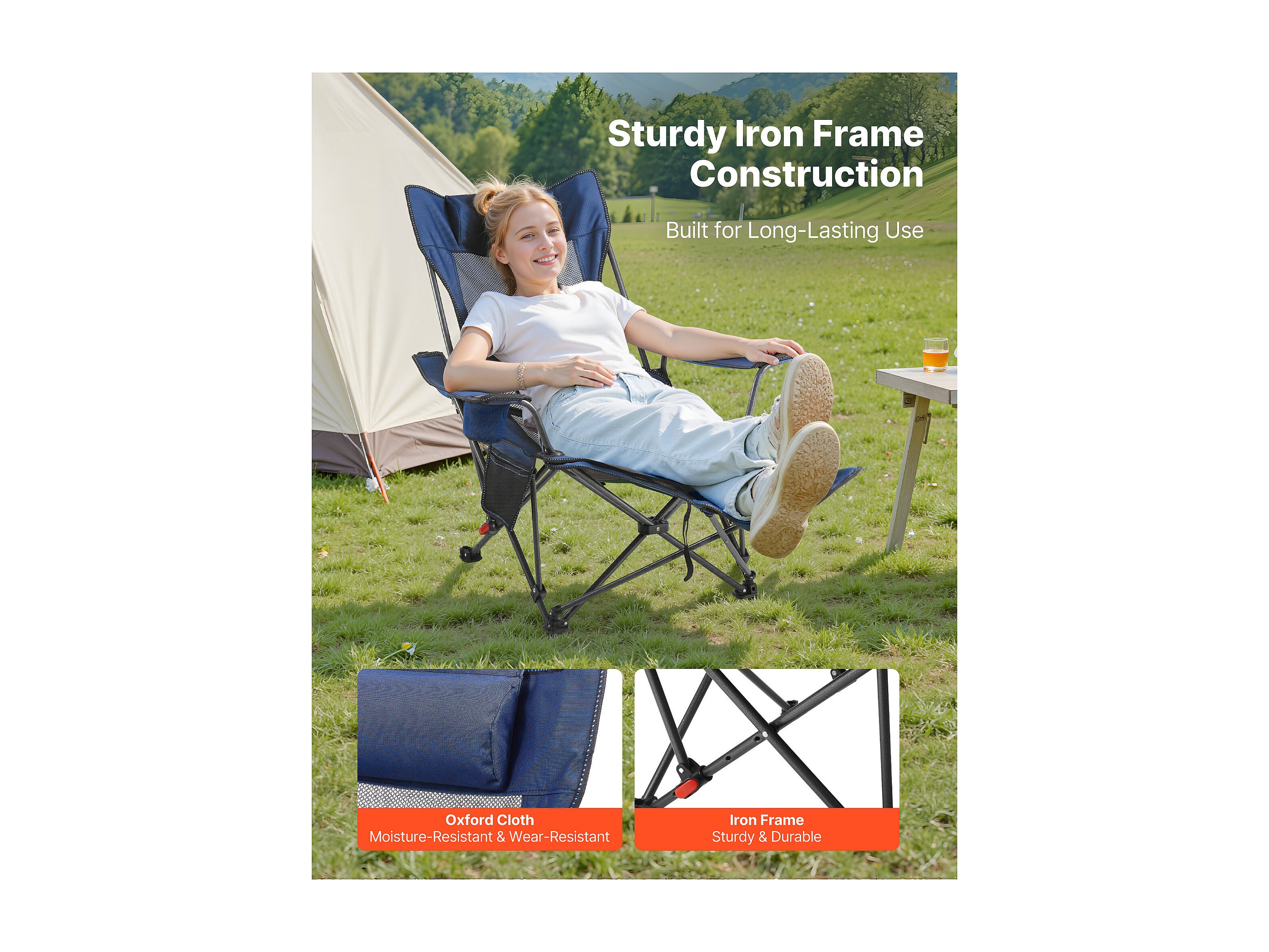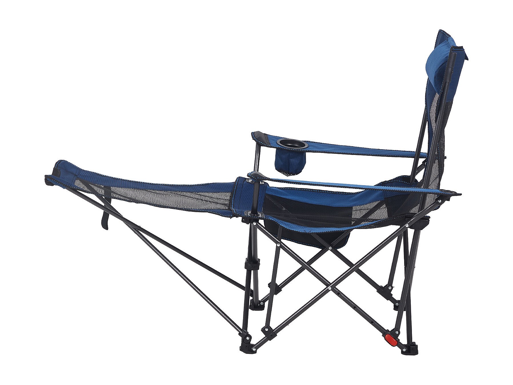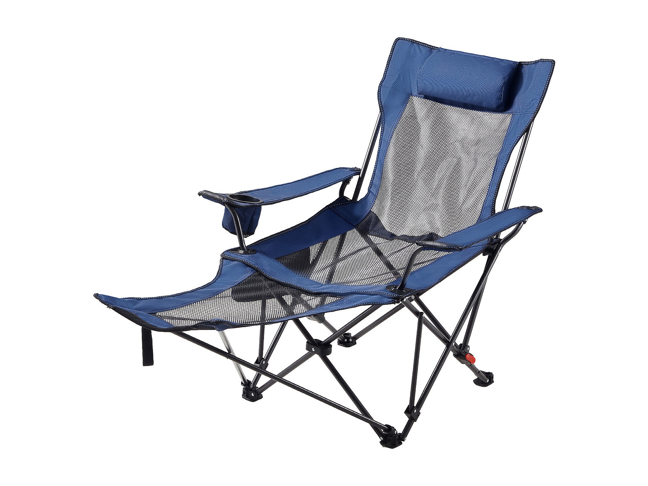 Sedia da Campeggio SucceBuy Pieghevole, 4 Posizioni Regolabili, Sdraio Inclinabile Portatile per Adulti, con Poggiapiedi, Poggiatesta, Tessuto a Maglia, Blu