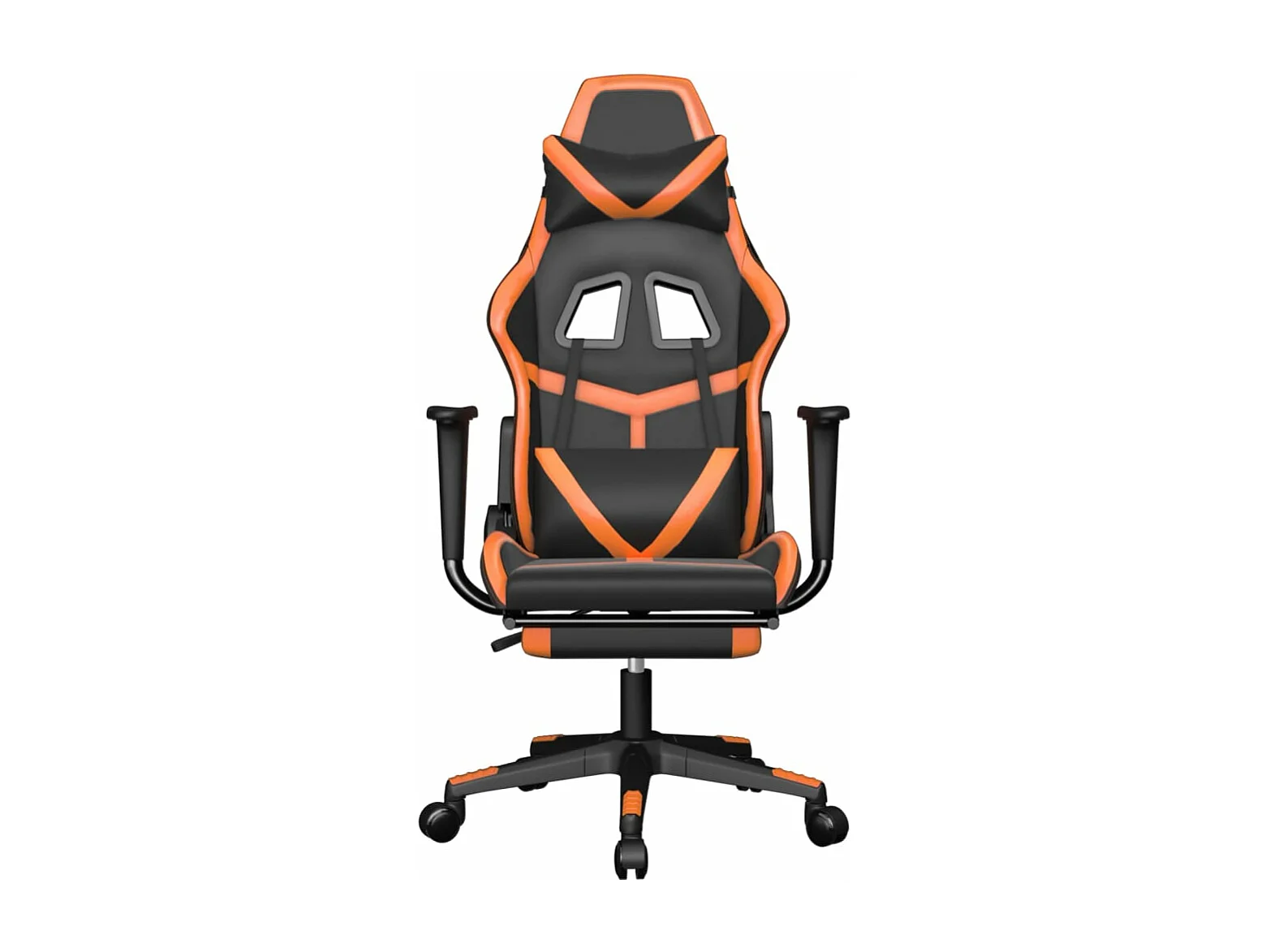 Sedia da gaming con poggiapiedi Ecopelle nera e arancione
